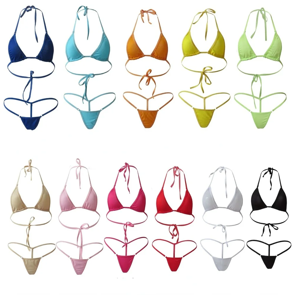 Соблазнительное нижнее белье, мини-купальник, женский прозрачный трёхточечный костюм бикини, Женский соблазнительный бесшовный ажурный купальник с заниженной талией, трусики-стринги