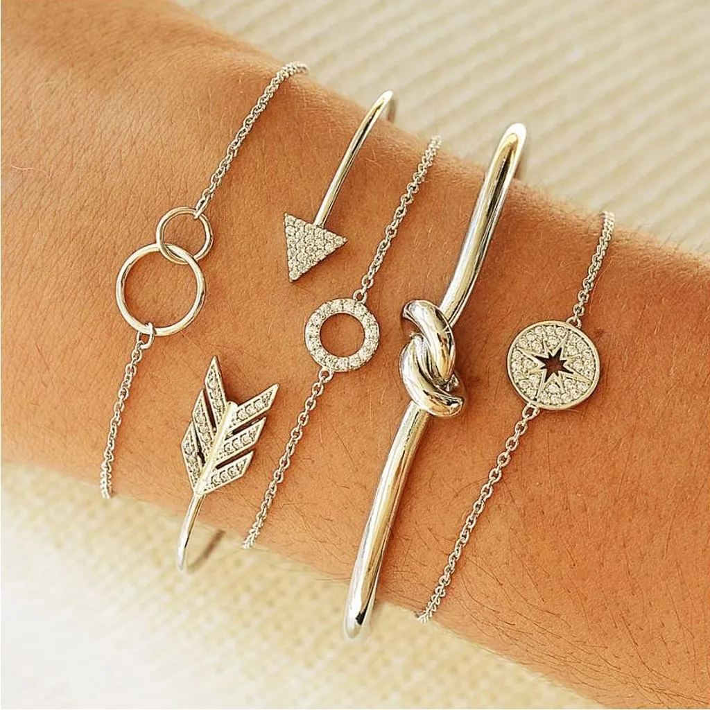 Женские браслеты-цепочки, открытый геометрический браслет с узлом, Простой Круглый круглый, со стразами