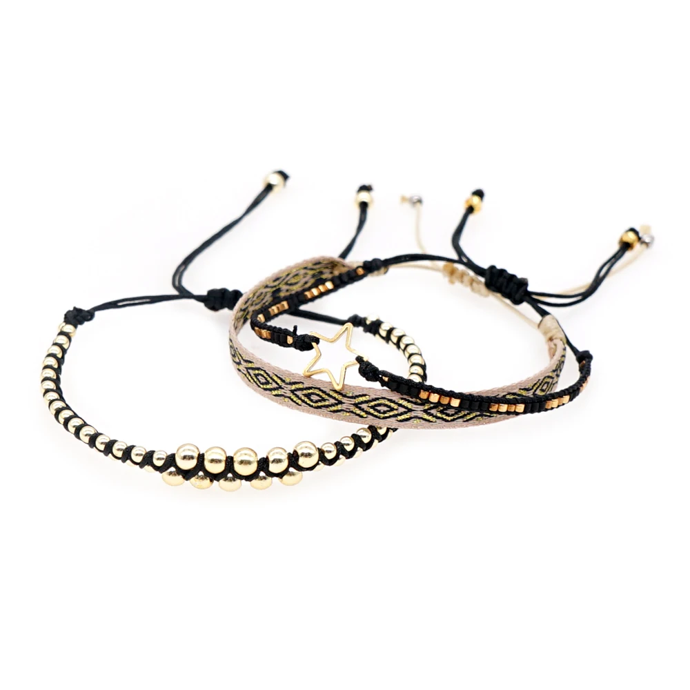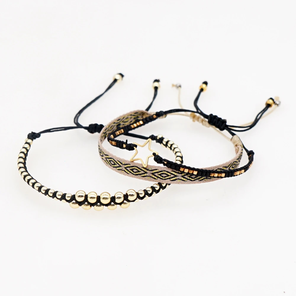 Go2BoHo 3 шт. модные ювелирные изделия черный и золотой плетеный браслет ручной работы бисер миюки браслет из бисера звезда набор подарок для женщин Модный