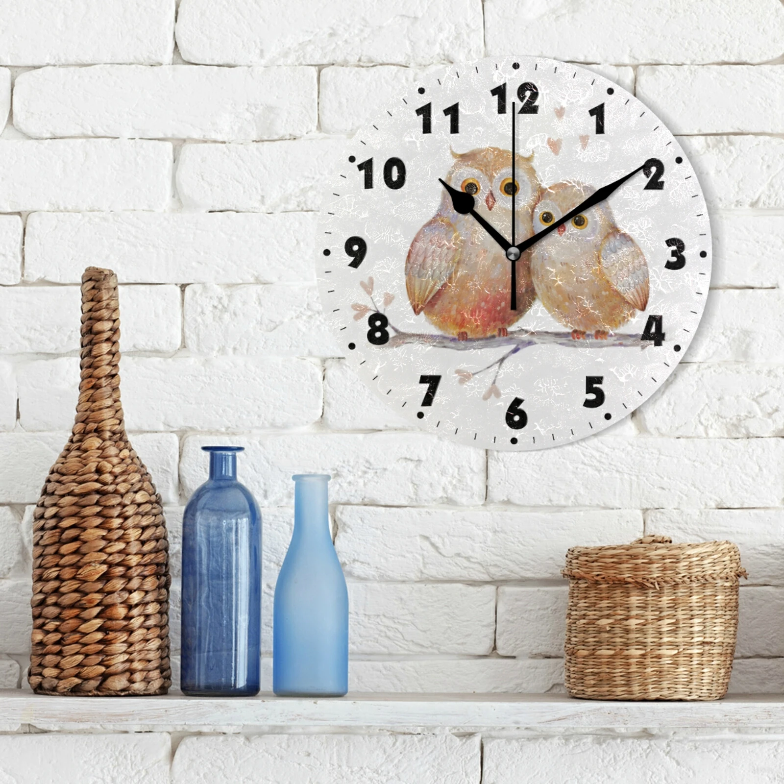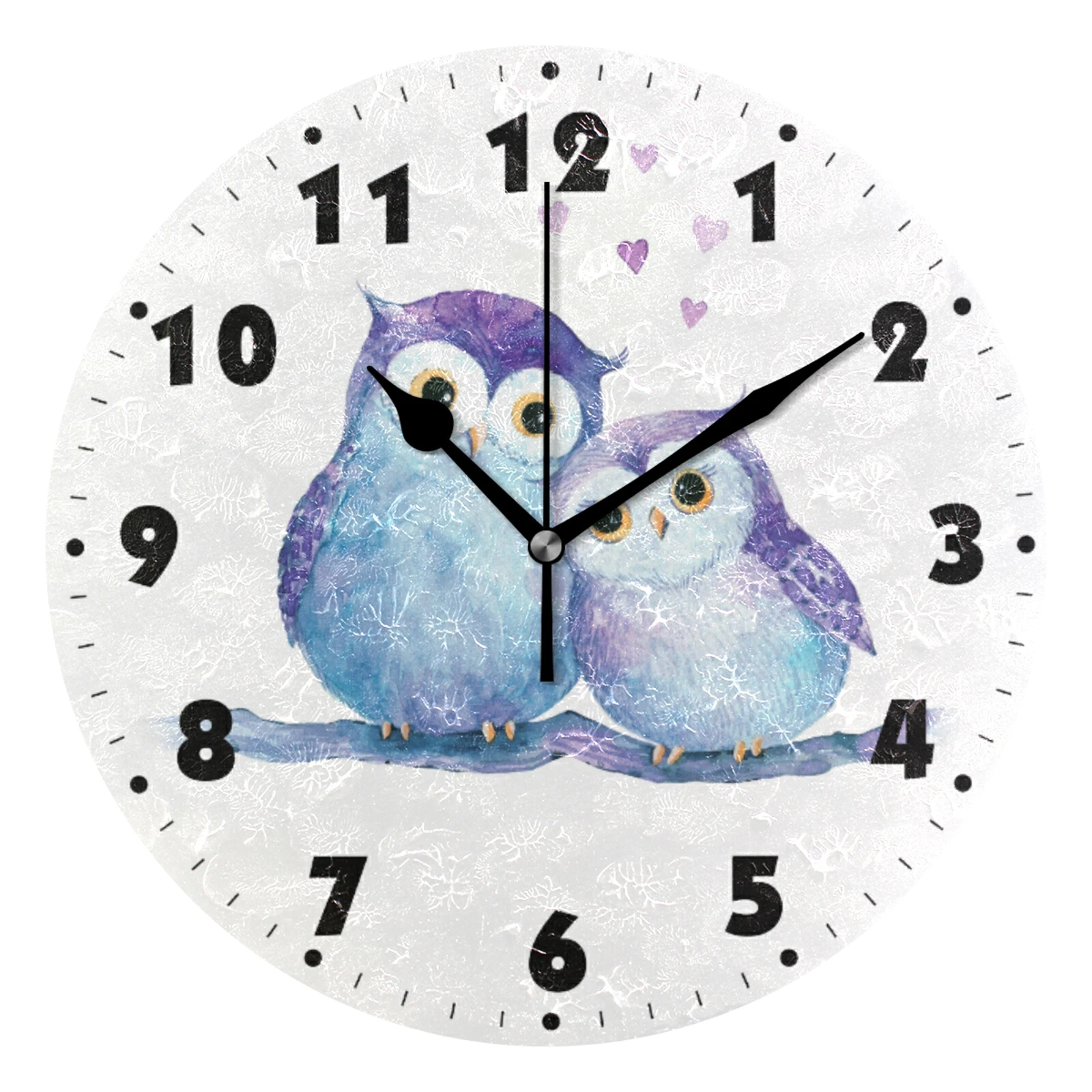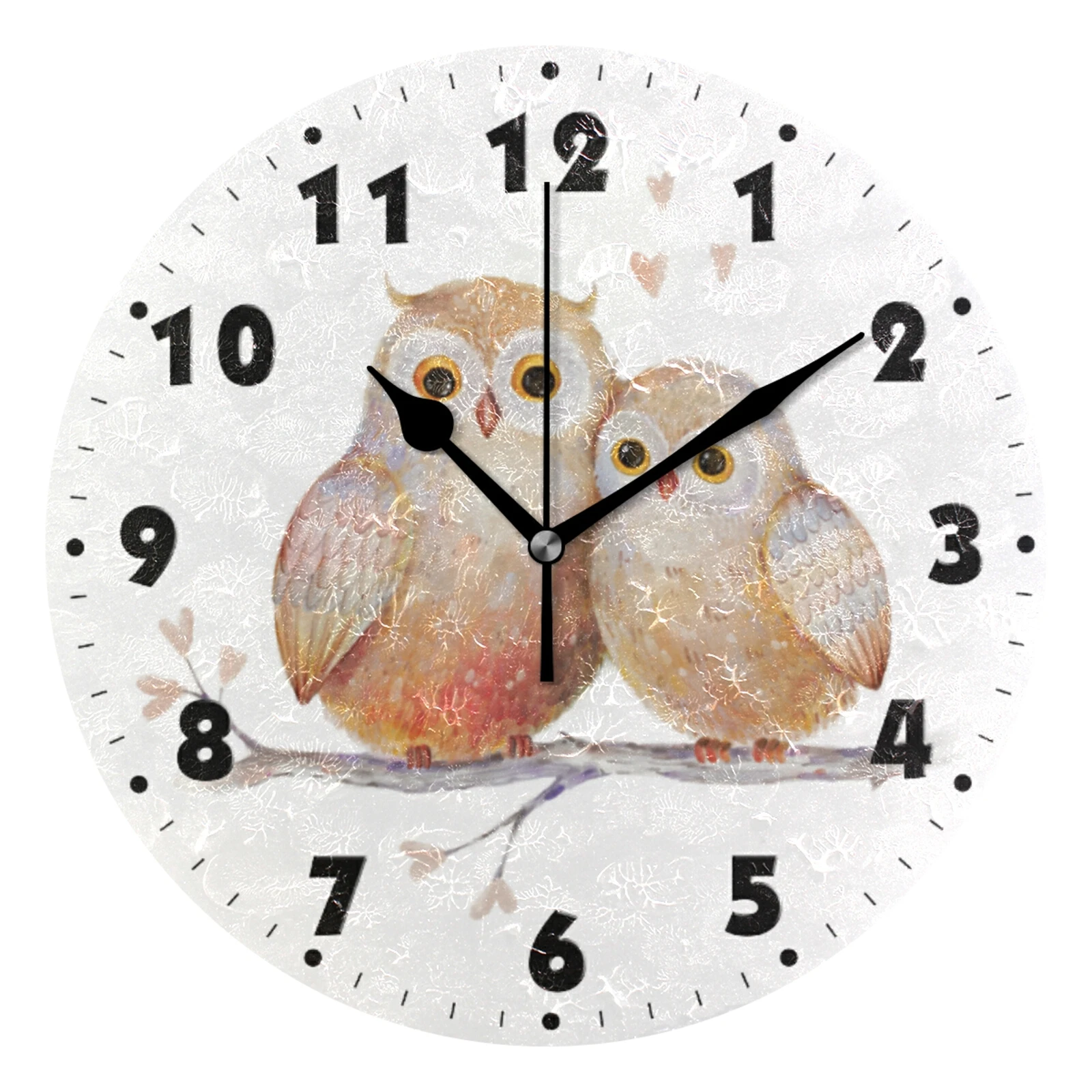 Бесшумные настенные часы с изображением мультяшной совы, круглые Настенные часы без тикания на батарейках, домашний декор, тихие настольные часы для гостиной и спальни