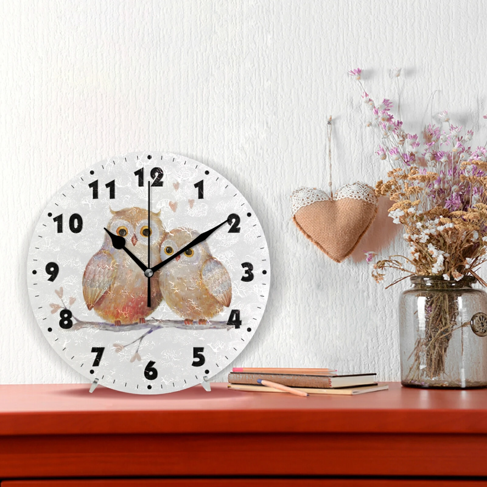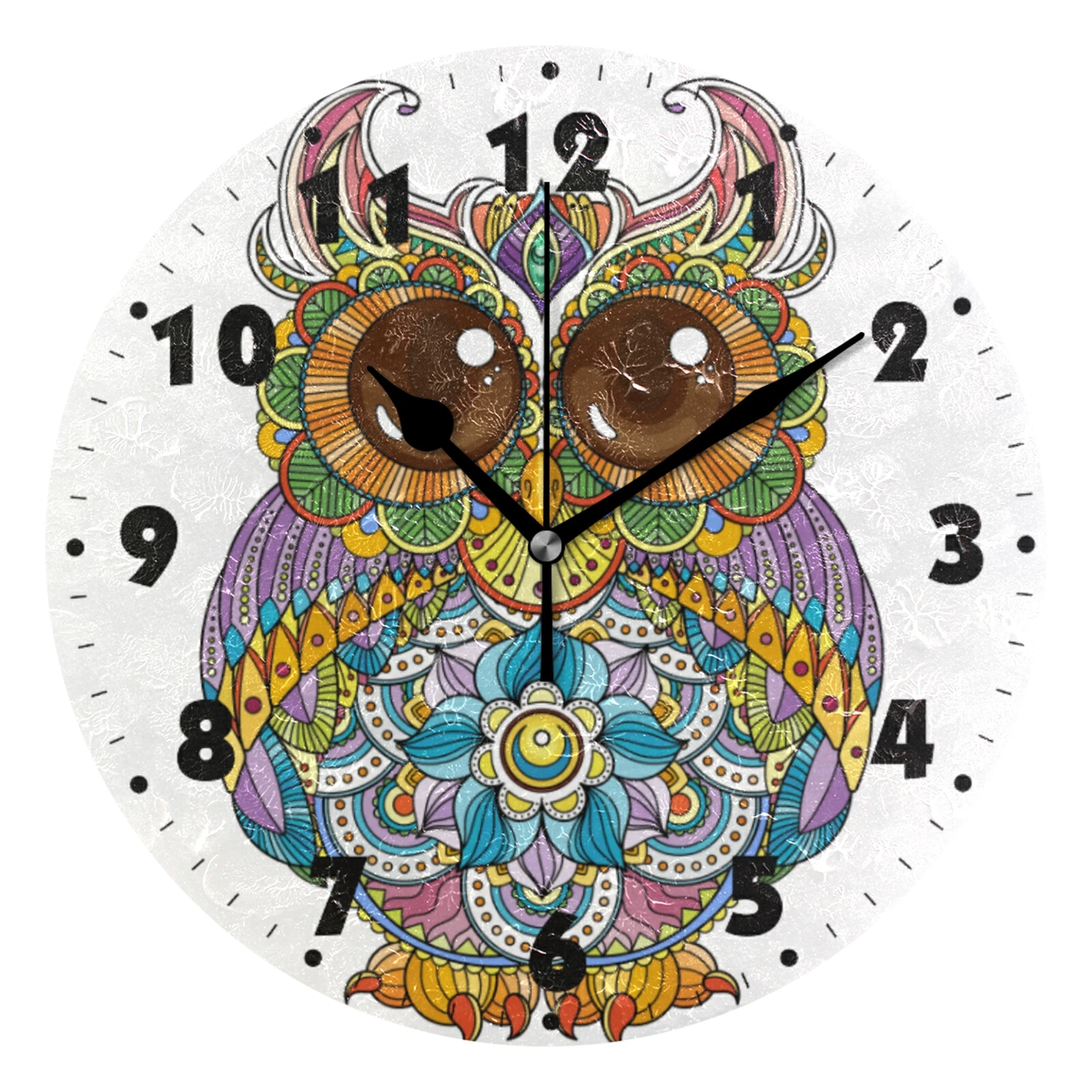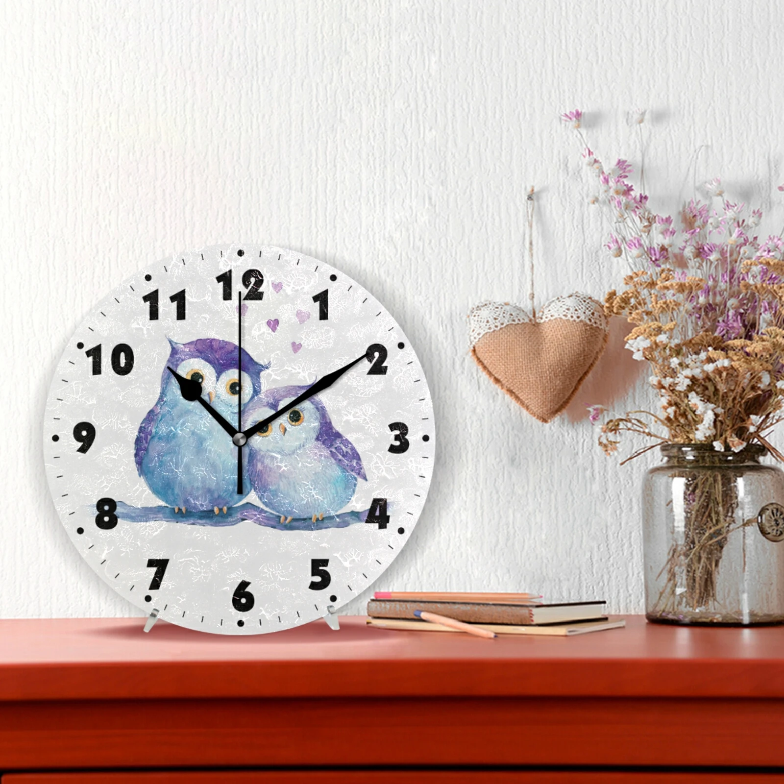 Бесшумные настенные часы с изображением мультяшной совы, круглые Настенные часы без тикания на батарейках, домашний декор, тихие настольные часы для гостиной и спальни