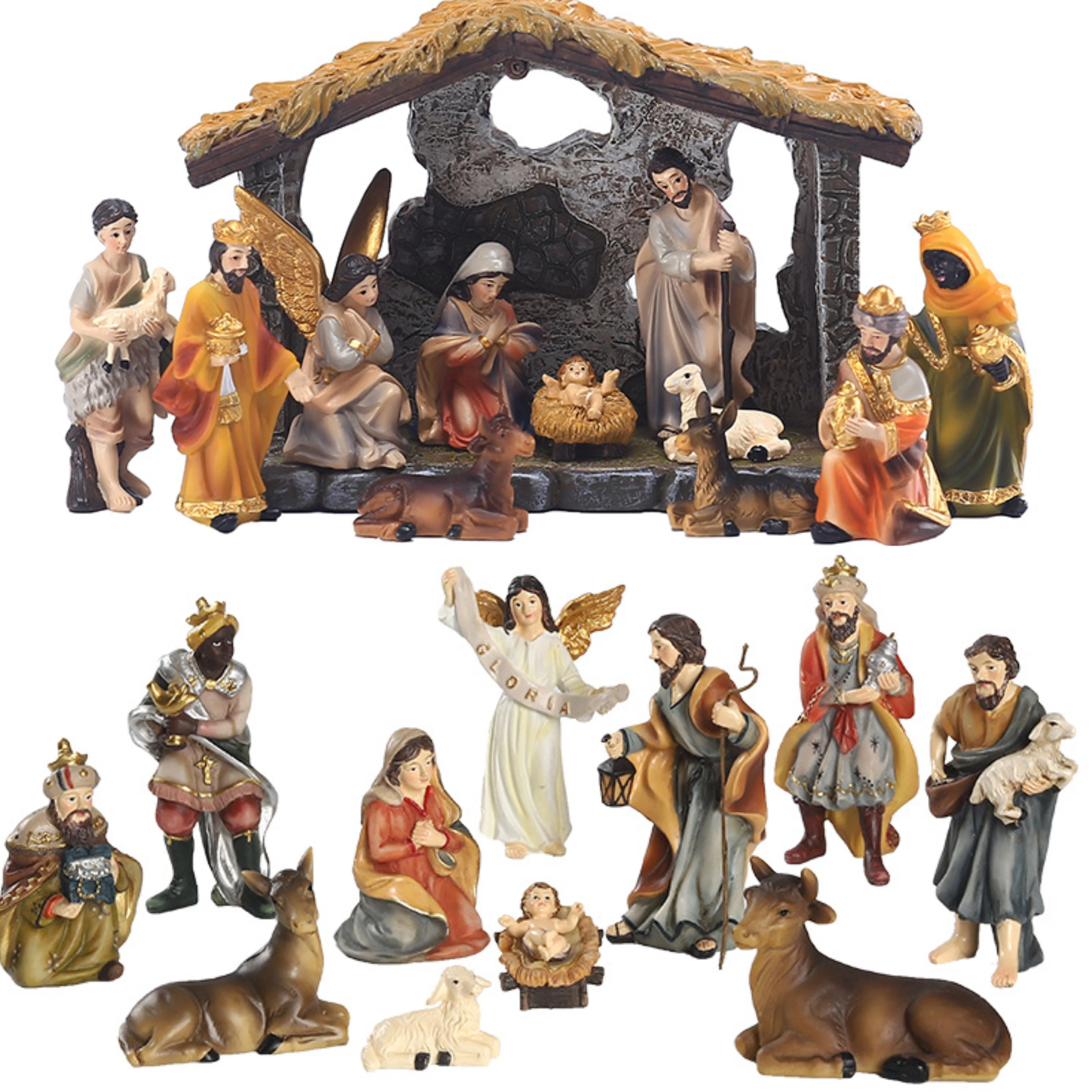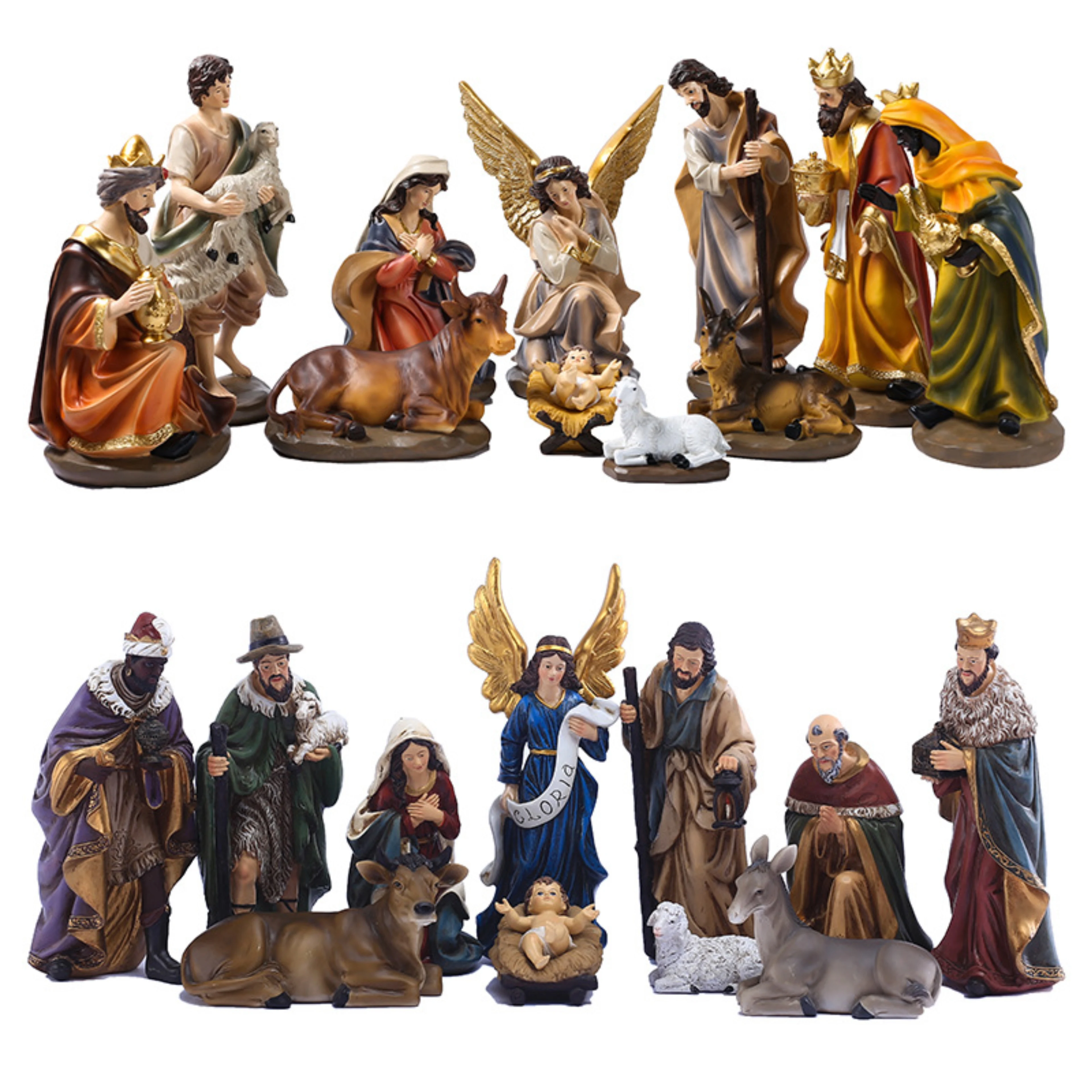 Рождественский набор статуэток. Ручная роспись Рождественская сцена, религиозные рождественские украшения Frankincense & Myrrh Декор