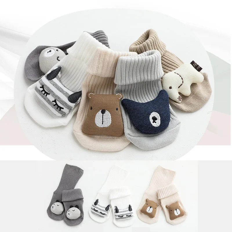 Детские носки, осенне-зимние мягкие хлопковые носки для новорожденных девочек, милые Нескользящие носки с 3D рисунком животных для новорожденных, на весну