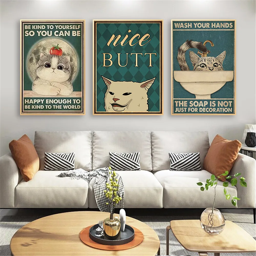 Постер на холсте в скандинавском стиле с изображением мультяшного кота, бара, ванной комнаты, поет, Декор, жестяной знак, туалетная бумага, портрет, металлическая Настенная картина
