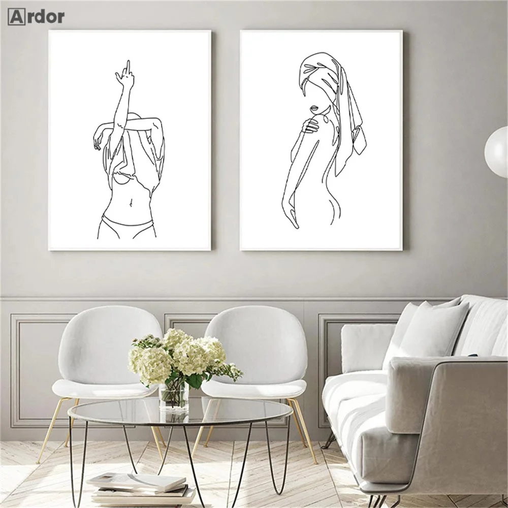 Привлекательная Женская Картина на холсте Черно-белая линия рисунок художественный принт женский постер для боди-арта цитаты настенные картины декор для гостиной