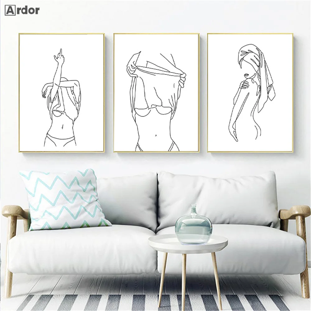 Холщовый постер и печать для обнаженной женщины, абстрактная линия,...
