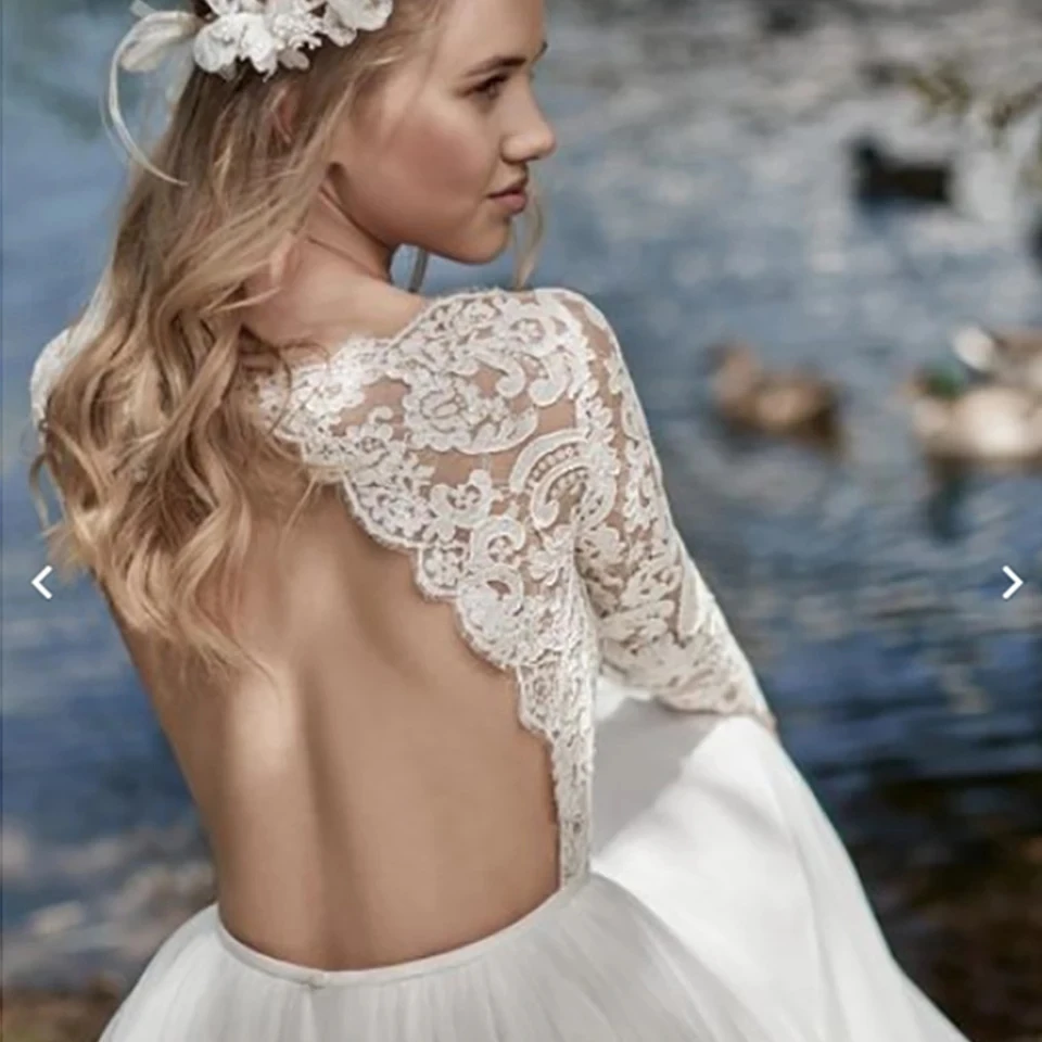 Винтажное кружевное свадебное платье с аппликацией, шифоновое платье с глубоким вырезом, длинными рукавами и открытой спиной, а-силуэт в стиле бохо, пляжные свадебные платья со шлейфом