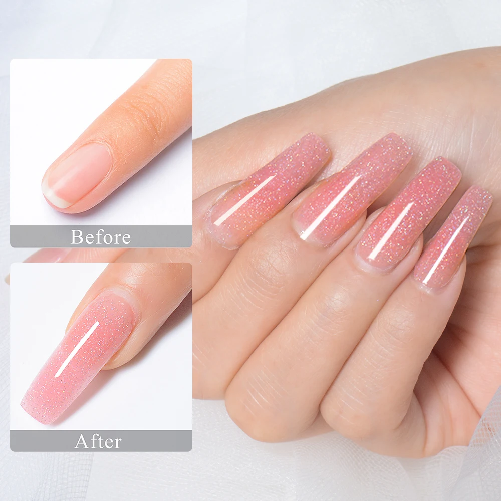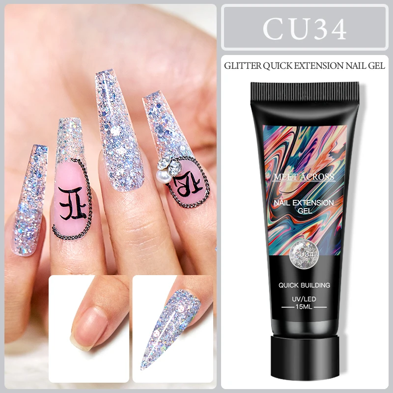 Акриловый гель MEET ACROSS для наращивания ногтей, прозрачный розовый блестящий Быстросохнущий гель для наращивания ногтей, средство для полировки ногтей