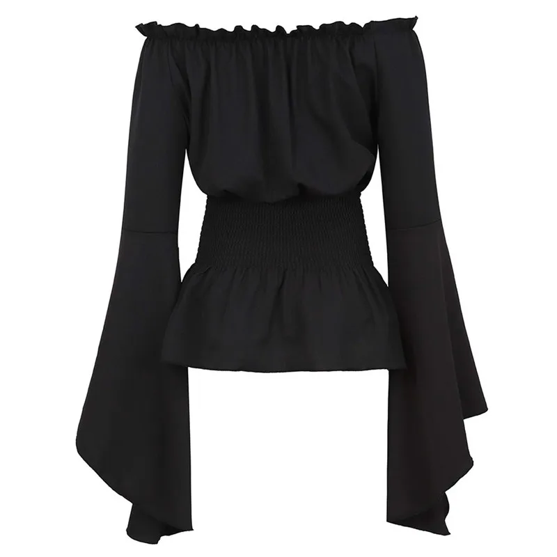 Женская блузка с длинным рукавом принцесса корсет в стиле ренессанс с рюшами элегантная готическая одежда Экзотическая одежда с открытыми плечами тонкая рубашка корсеты