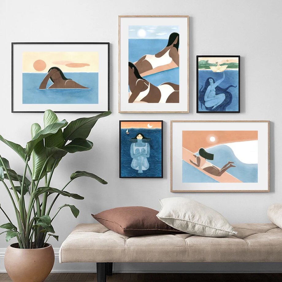 Пляжная ракушка пустыня Роза линия девушка настенная Картина на хол...
