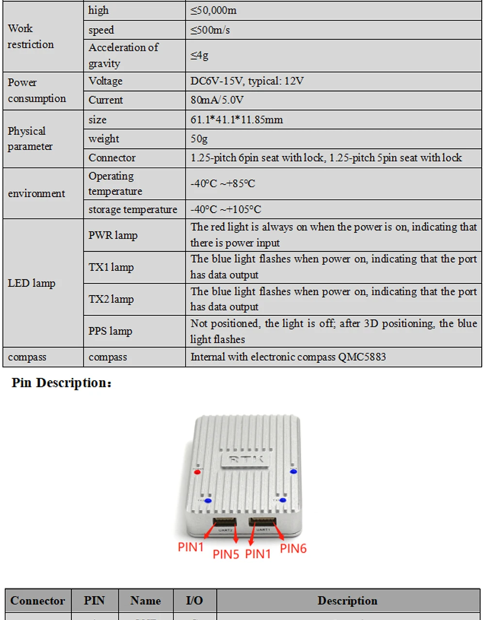 6. Модуль поддерживает высокоточное дифференциальное позиционирование RTK на сантиметровом уровне.