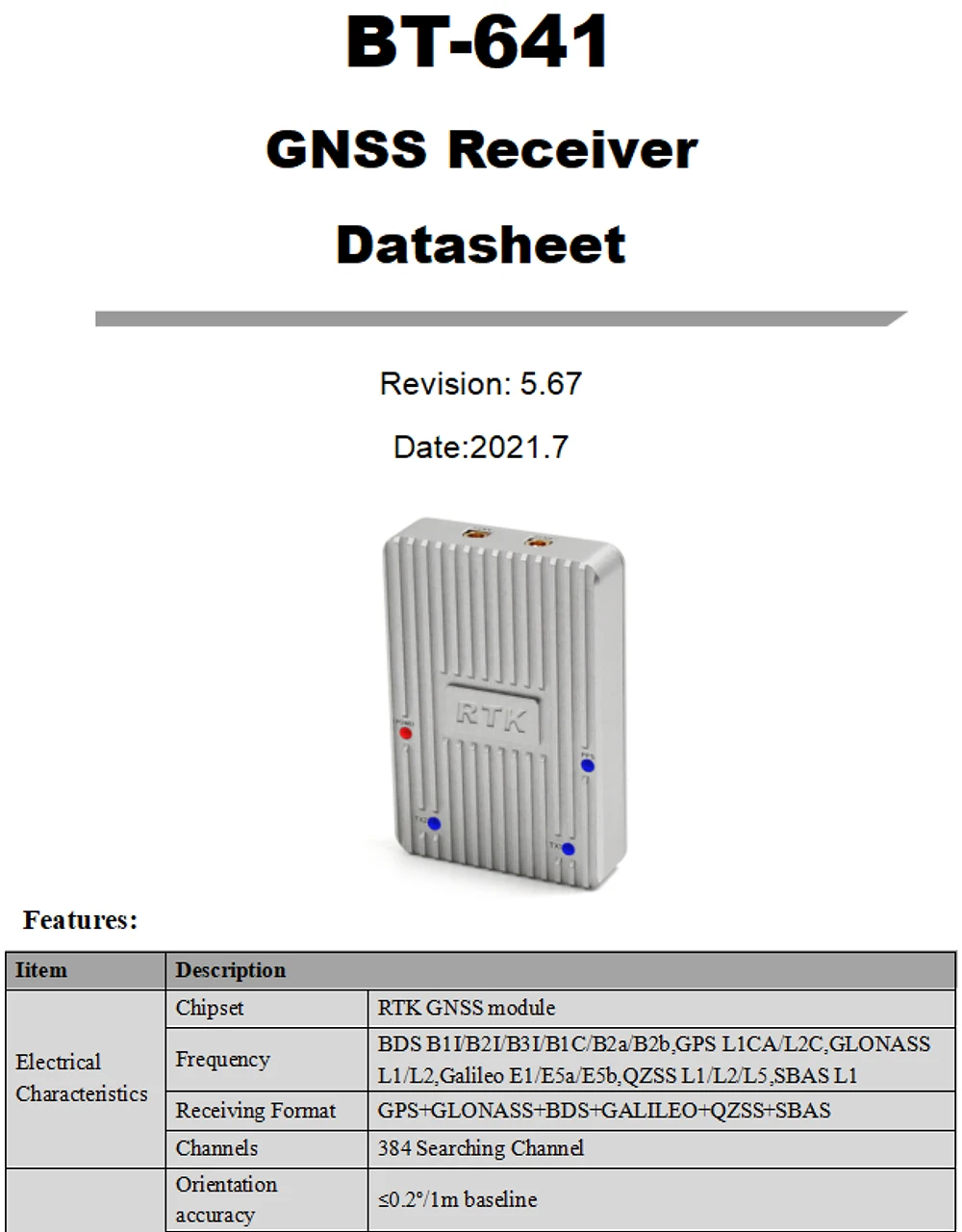 Single point positioning accuracyPlane≤1.5m (RMS) Elevation ≤3.0m (RMS)