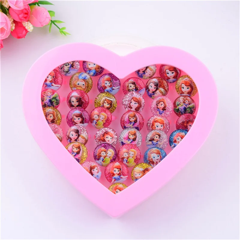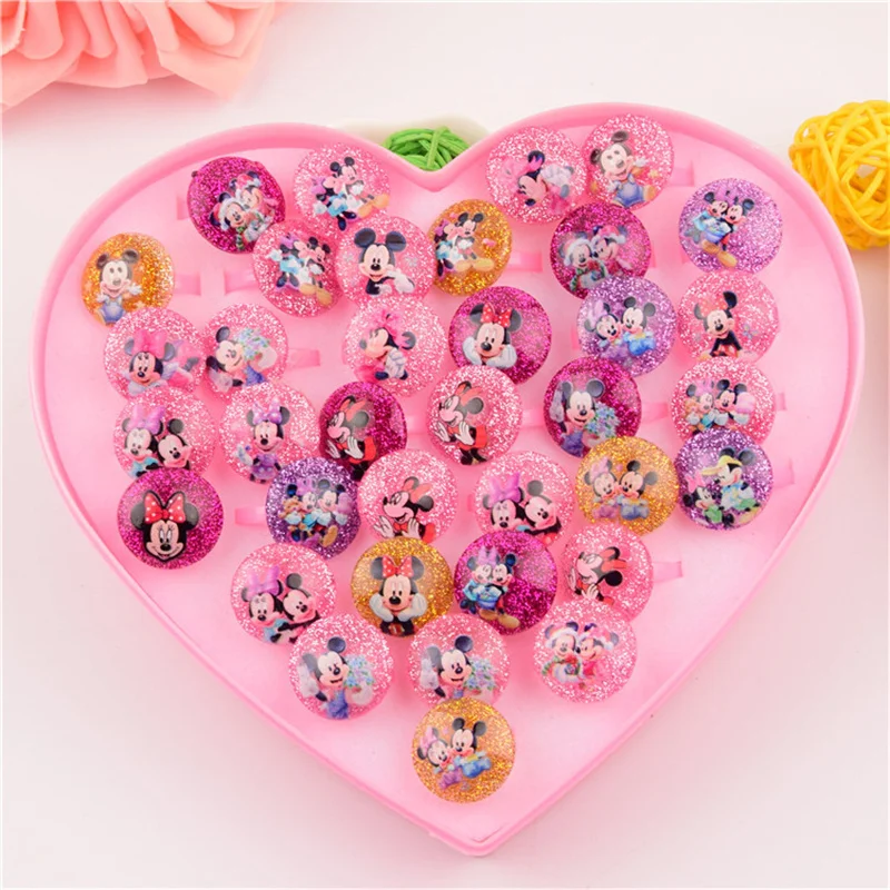 36 шт. в коробке, кольцо Принцессы Диснея, мультяшное аниме, Эльза, Минни, Микки, набор мыши, кольцо на палец, ювелирные изделия, коробка с сердцем, детская игрушка, подарок
