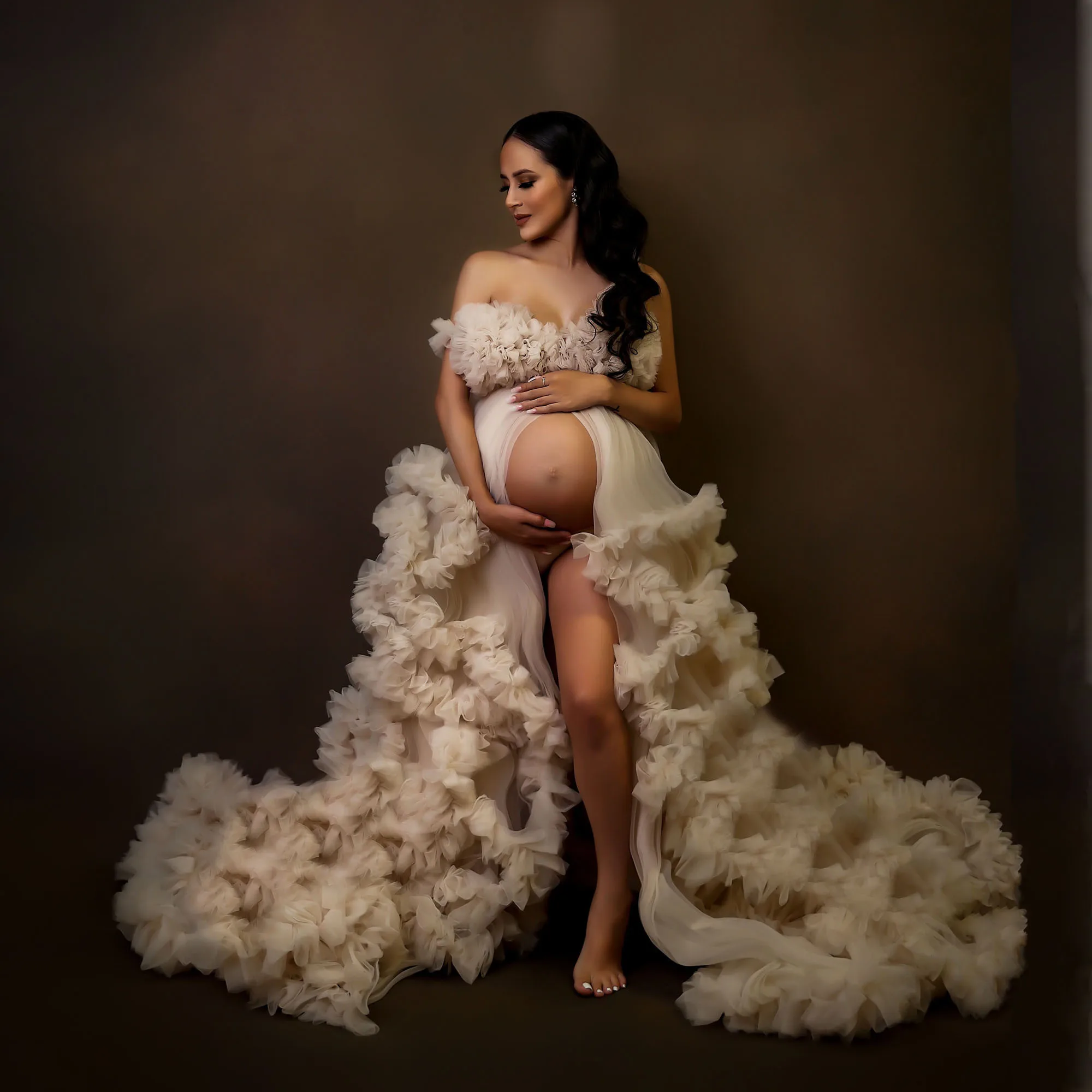 Пышные Экстра пышные платья для беременных с открытыми плечами для фотосъемки в честь будущей матери пышные тюлевые платья для беременных