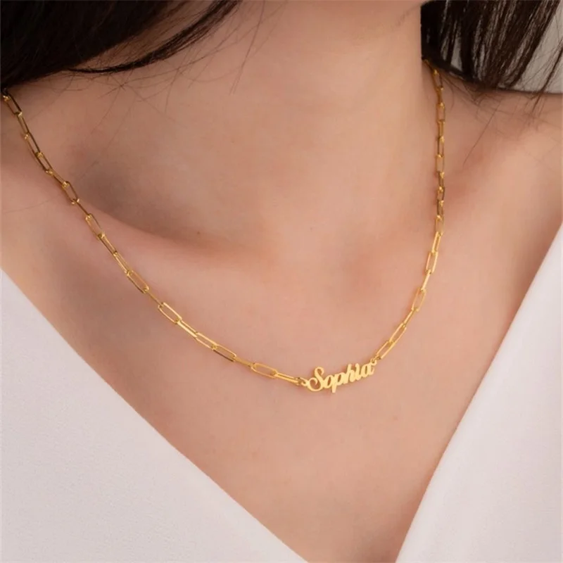 Модное женское ожерелье с именем на заказ, ожерелья из нержавеющей ...