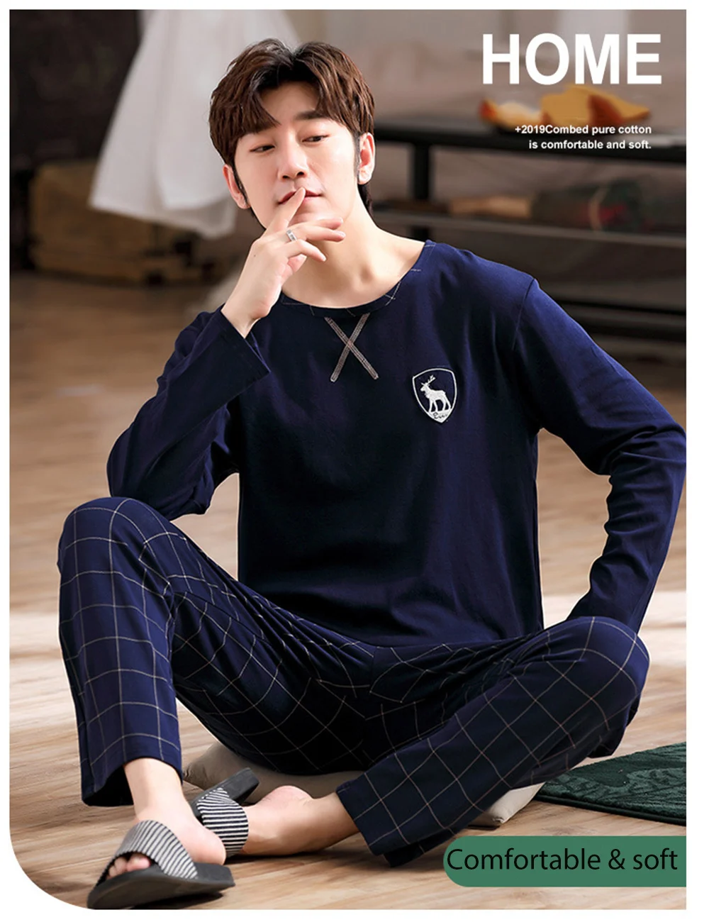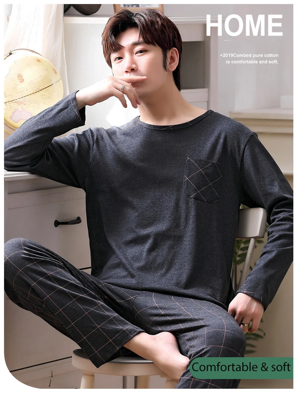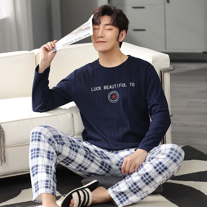Осенне-зимние мужские пижамные комплекты, хлопковая одежда для сна с принтом, Ночной костюм, повседневные клетчатые брюки с длинным рукавом, пижамы, Женская домашняя одежда 4XL