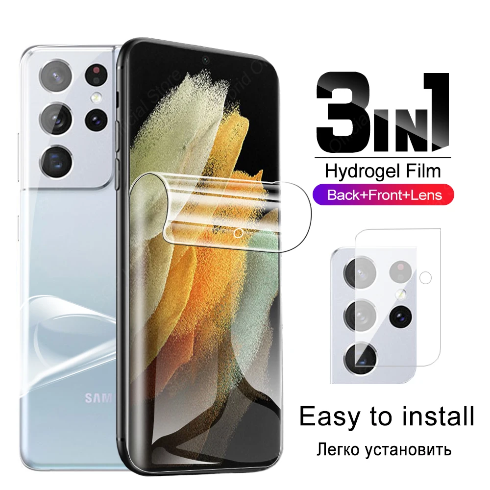 3в1 Гидрогелевая пленка для экрана для Samsung Galaxy S21 Plus S20 FE Note 20 Ультра задняя защитная пленка для S 21 5G Защитная пленка для объектива камеры
