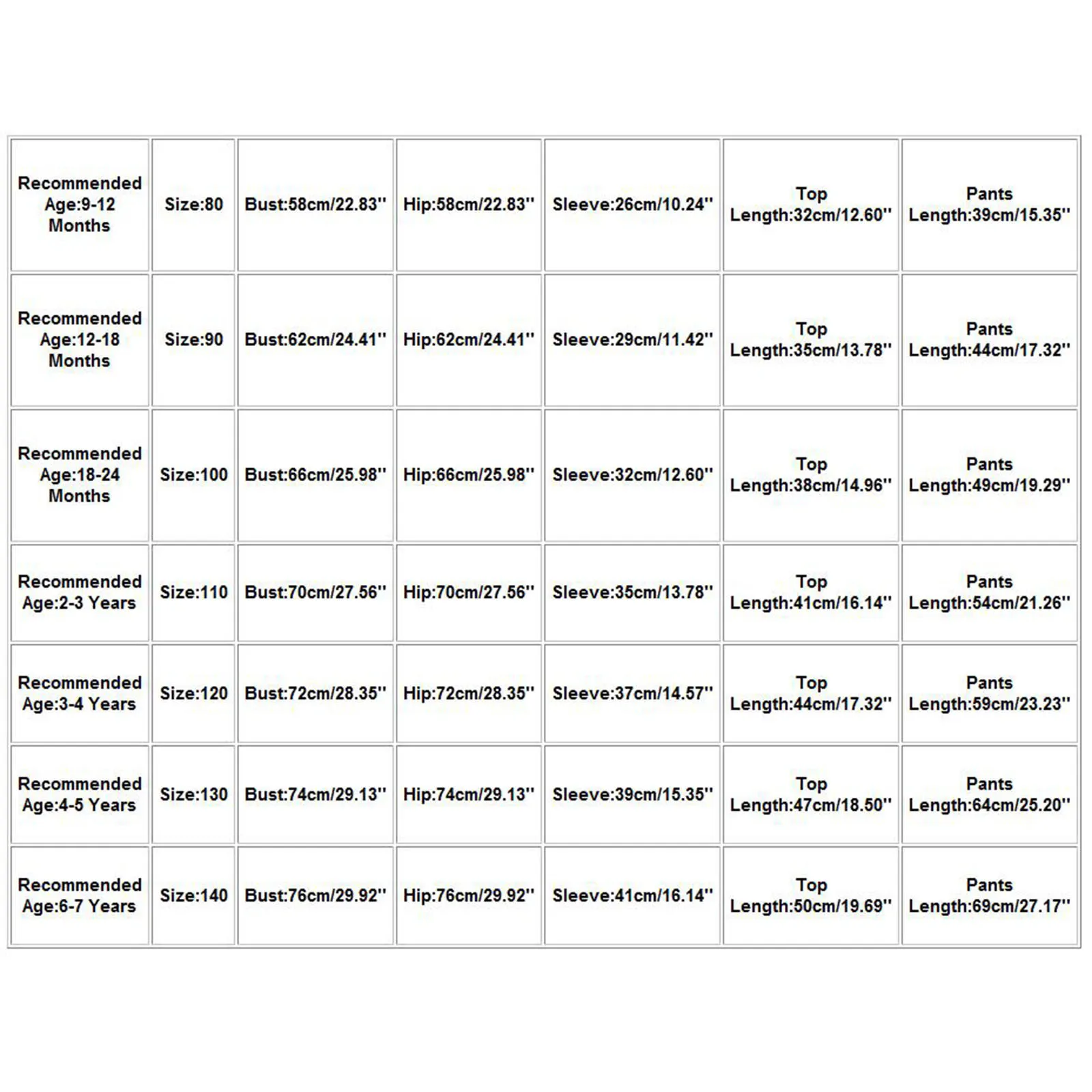 Длина рукава: длинныйРукав Основной цвет: как на картинкеСтиль: МодныйСтильный и модный дизайн сделает вашего ребенка более привлекательнымОтлично подходит для повседневной, повседневной, вечерние фотосессии, а также отличная идея для детского шоуОн изготовлен из высококачественных материалов, мягких на ощупь рук, не наносит вреда коже вашего ребенкаВозможны незначительные отклонения на 1-3 см из-за ручного измерения и незначительные отклонения в цвете для разных настроек дисплея,Спасибо за понимание!1 дюйм = 2,54 смОбратите внимание: если ваш ребенок пухленький, мы рекомендуем выбрать больший размер, спасибо.Спасибо и хороший день!Посылка включает в себя:1 Топ + 1 штаны Таблица размеров: