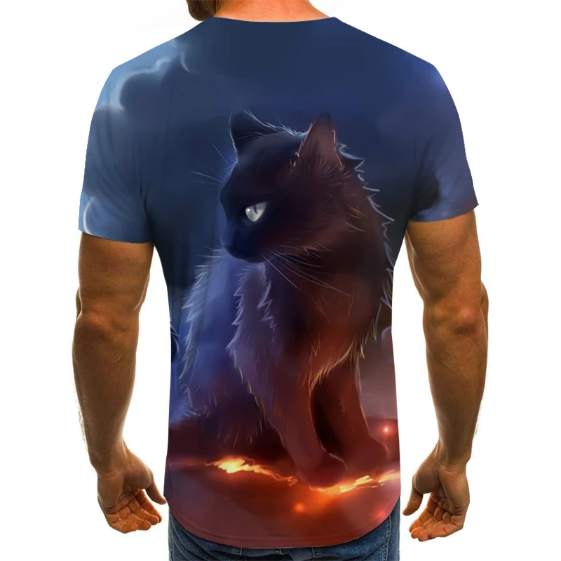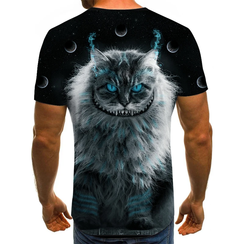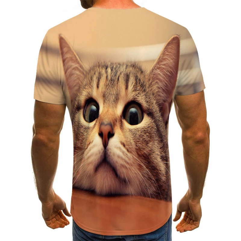 Футболка с 3D-принтом кошки для мужчин и женщин, модная рубашка с к...