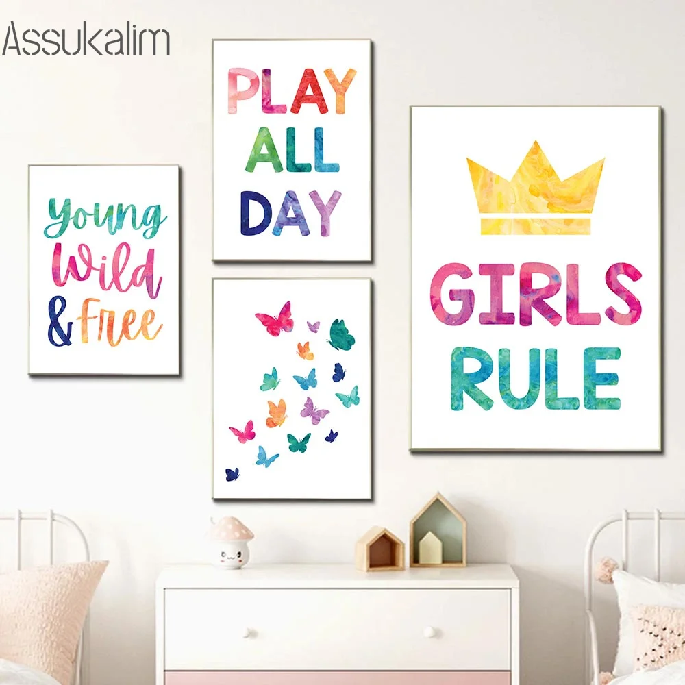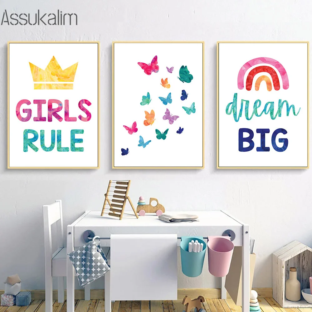 Настенная живопись для детской, плакаты с бабочками цветов, художес...