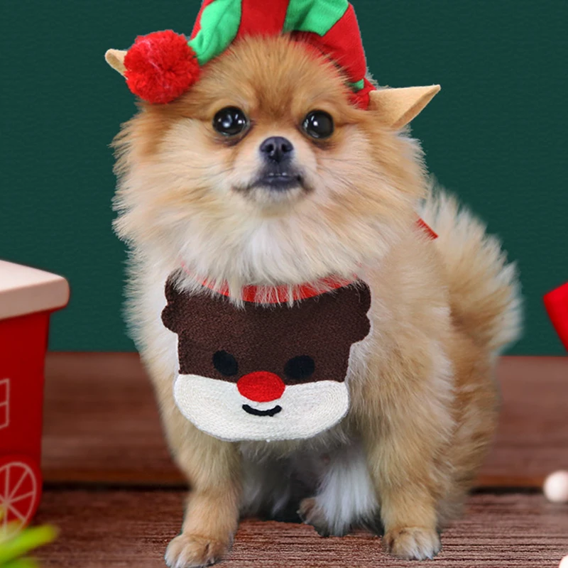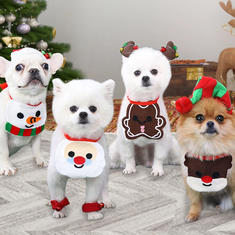 6 стилей Регулируемый медведь Санта Клаус снеговик лося принт собака слюнявчик, полотенце для слюней милый мультфильм Бишон Тедди Хироми кошка шарф для питомца