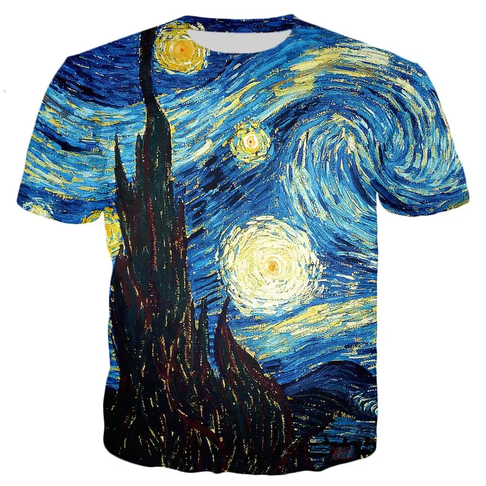 Новинка 2021, футболка для мужчин и женщин, картина Винсента Ван Гога маслом, звездная ночь, футболки с 3D принтом, модные топы большого размера