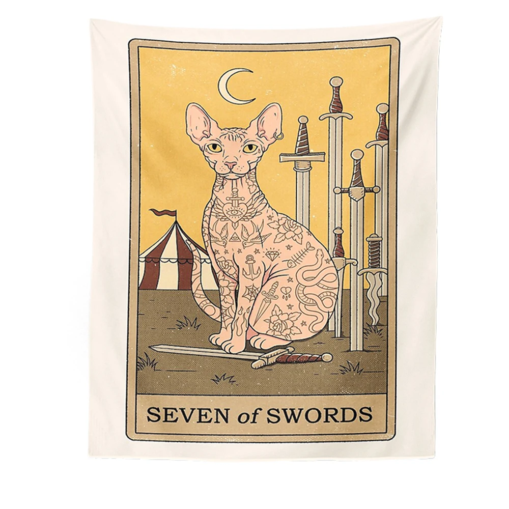 Гобелен в стиле Таро карточка гобелен в стиле бохо настенная подвеска кошка таинственное гадания ведьмастерство пляж Луна фаза эстетическое украшение для комнаты Фреска