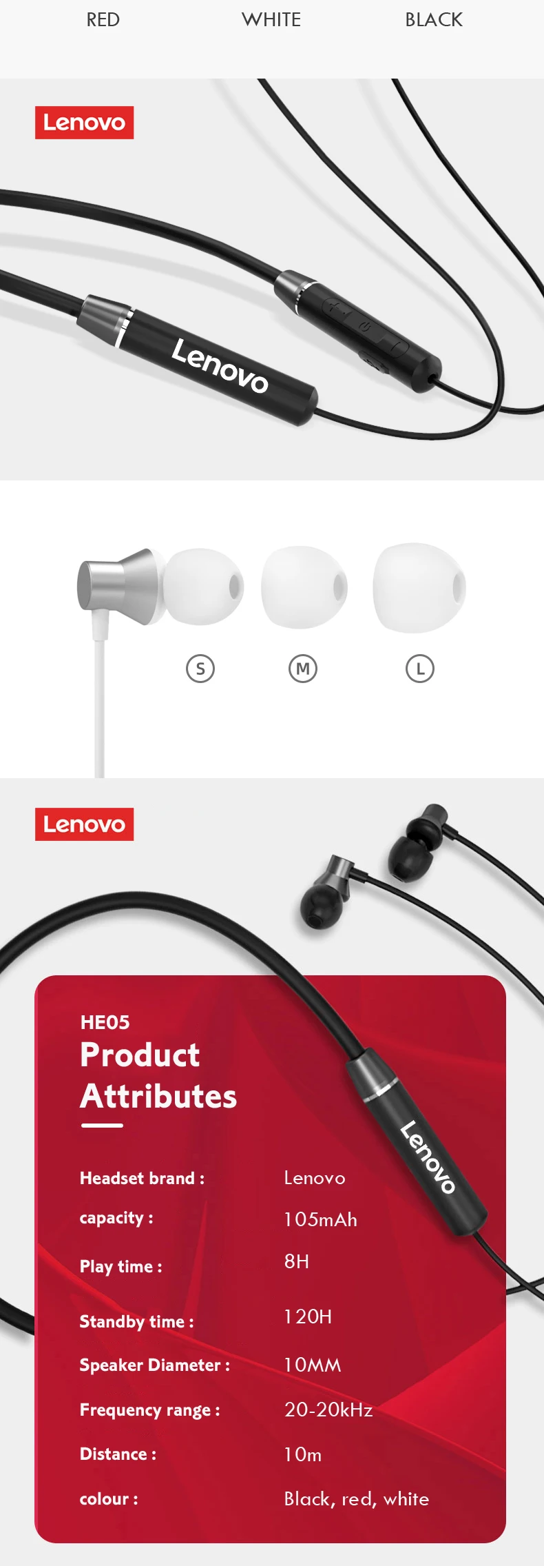 Беспроводные Bluetooth-наушники Lenovo HE05 с магнитным шейным ободом