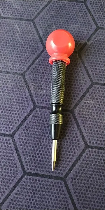Думал круглая пластиковая ручка просто одевается на металлический керн,оказалось она с резьбой,насколько это хорошо для ударного инструмента-время покажет.Сталь хорошая,ставит отметки на железном уголке,при необходимости все части можно заменить,устройство простое