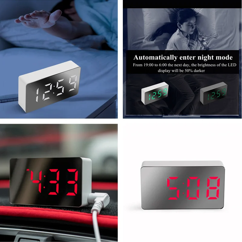 Светодиодные зеркальные цифровые часы будильник дисплей отображение времени беззвучный календарь Регулируемая яркость электронные настольные часы украшение дома