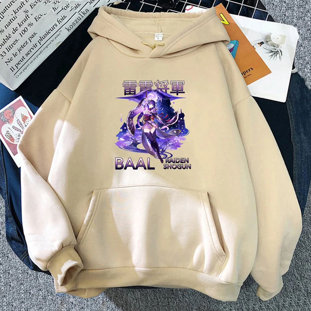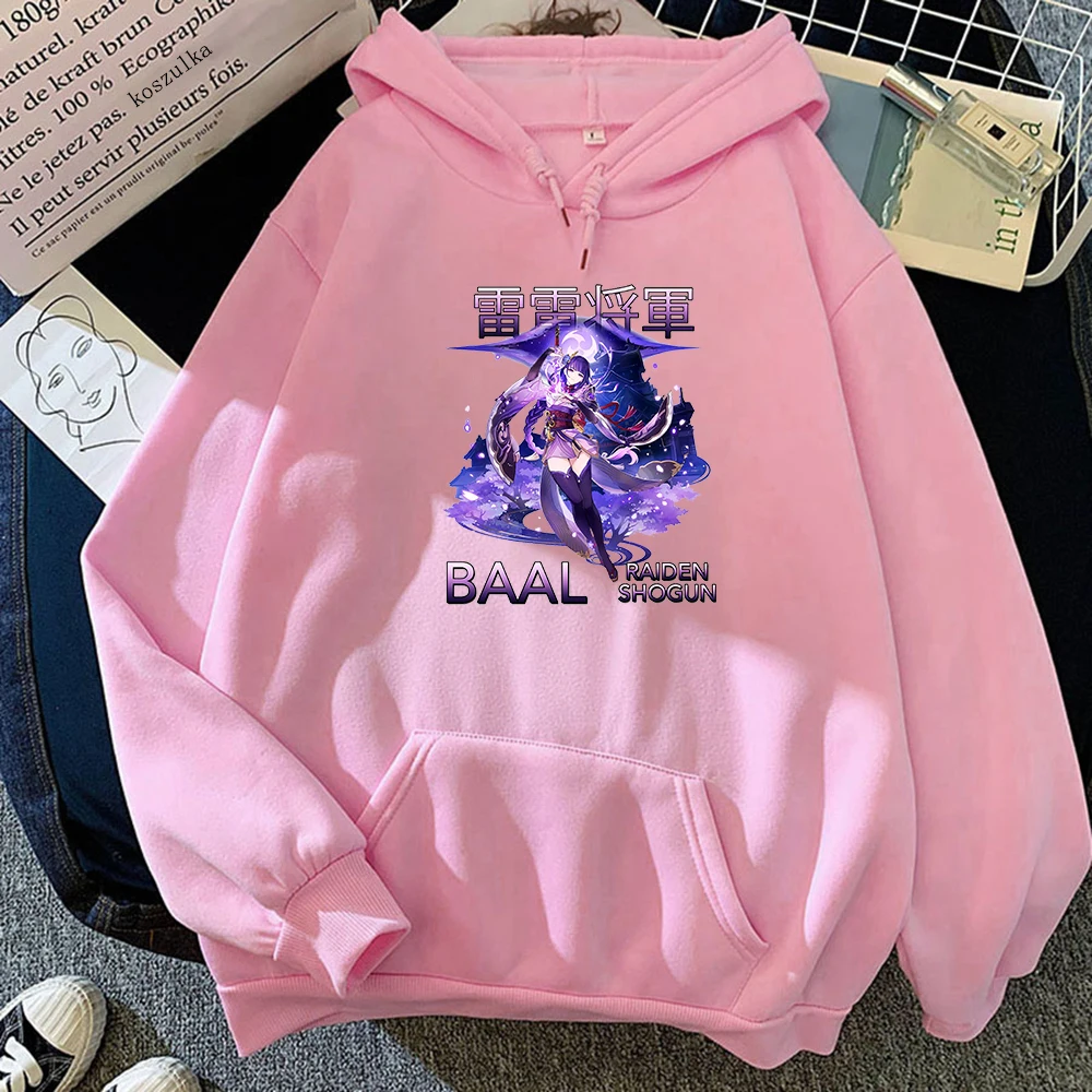 Harajuku аниме Genshin Impact Raiden Shogun Смешные Толстовки Geme модный мультяшный принт Зимняя Повседневная Женская Толстовка Оверсайз