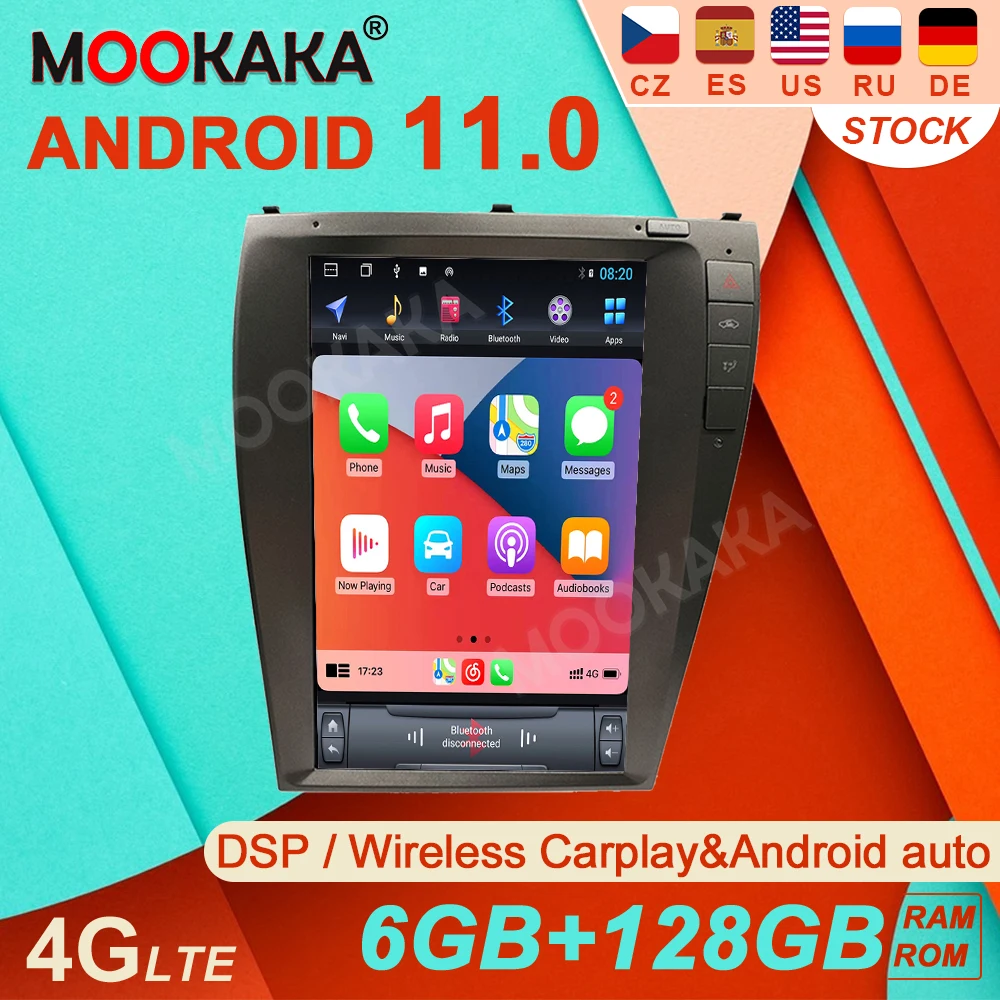 Магнитола на Android 11, вертикальный мультимедийный проигрыватель в стиле Tesla 6 + 128G для Lexus ES ES240 ES300 ES330 ES350, автомобильный стерео GPS Navi 4G
