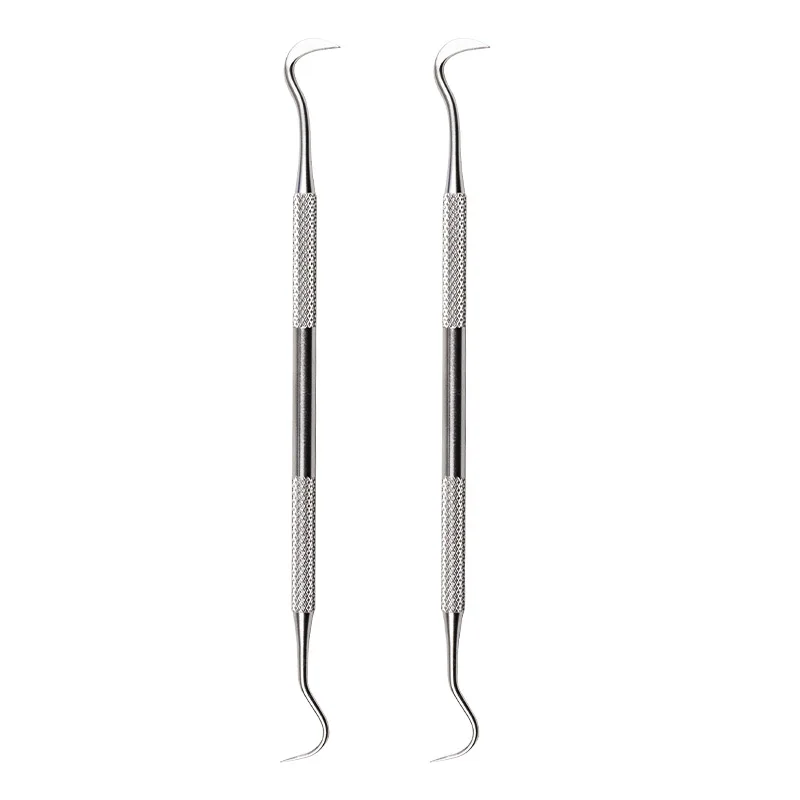 Двухсторонний инструмент для чистки зубов с изогнутым дизайном, скребок из нержавеющей стали, инструмент для удаления зубного налета, стоматологический инструмент для чистки зубов