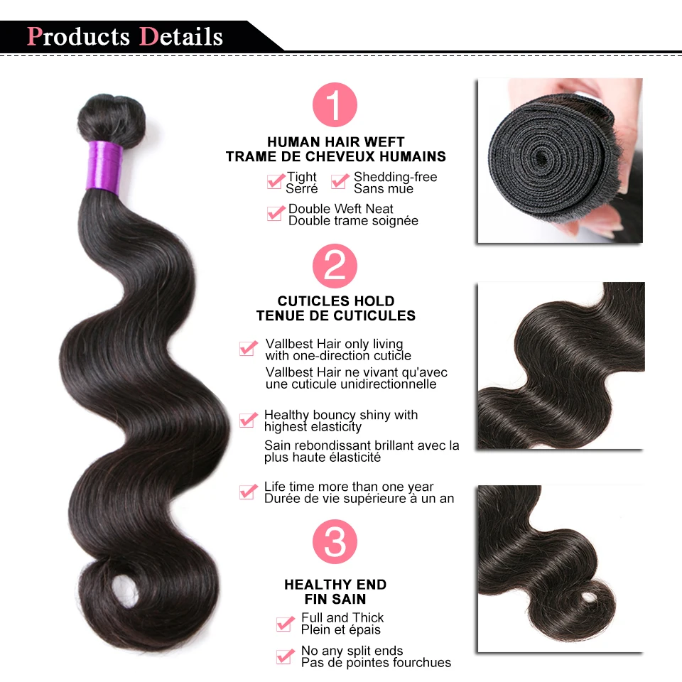 4. Couleur des cheveux : Couleur naturelle 1B & Jet Black, cet article comprend 1 шт./3 шт./4 шт. cheveux de vague de corps