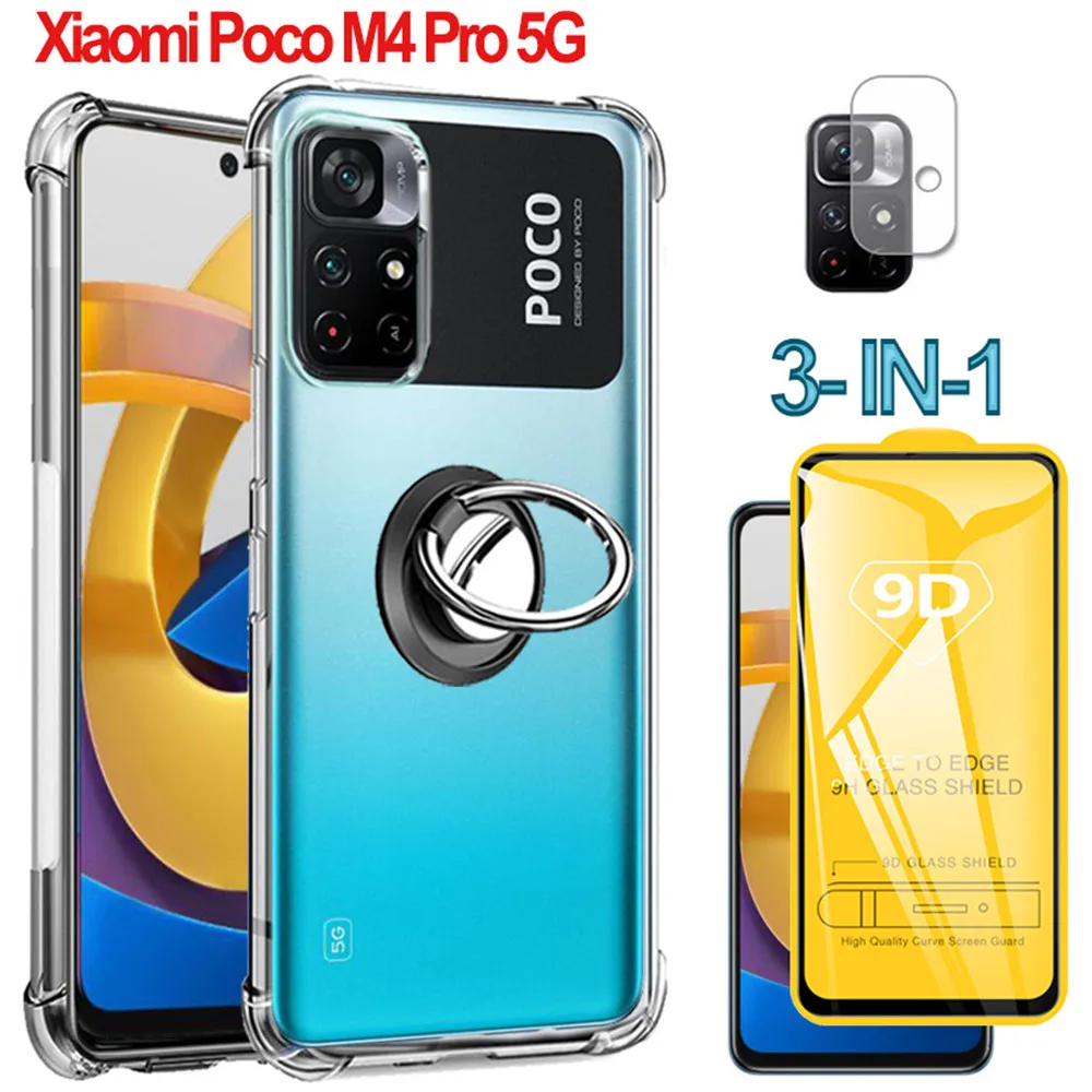 чехол Poco M4 Pro 5g чехлы-кольца Poco M4 Pro 5g силиконовый чехол +защитное стекло для Xiaomi PocoM4Pro Poko M4Pro противоударный чехол PocoM4 чехол для телефона поко м4 про 5g