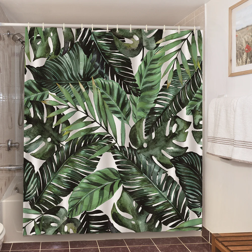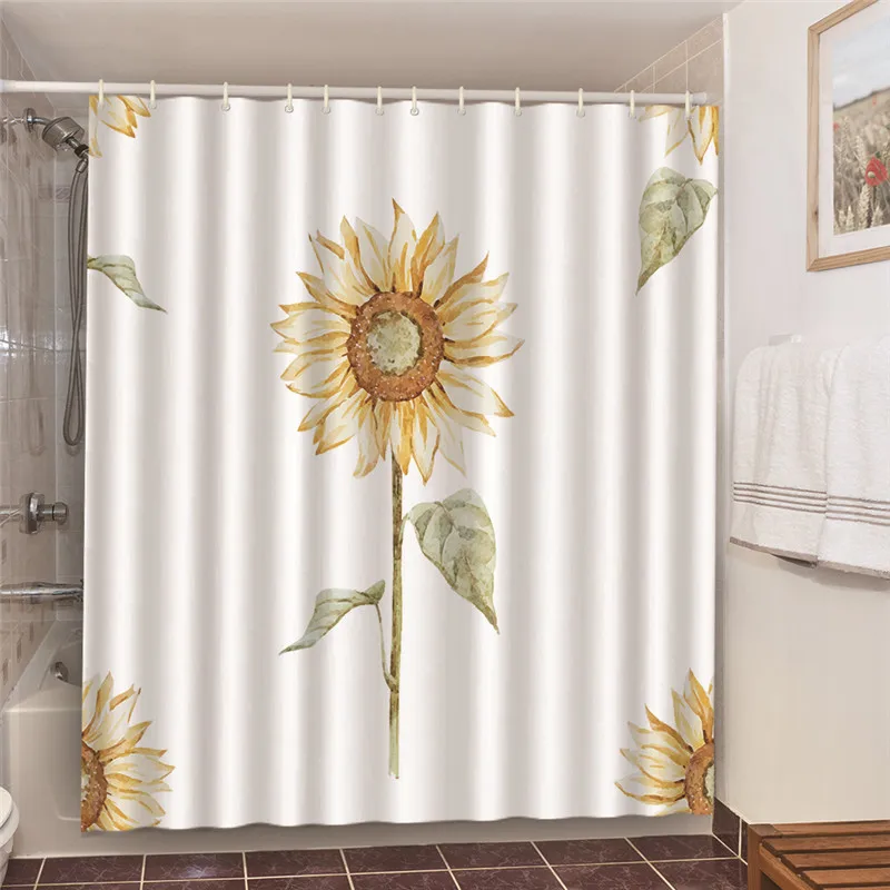 Занавеска для душа с зелеными листьями, 3d-занавеска в виде подсолнуха для ванной, спальни, уборной, водонепроницаемая, с защитой от глаз, домашний декор