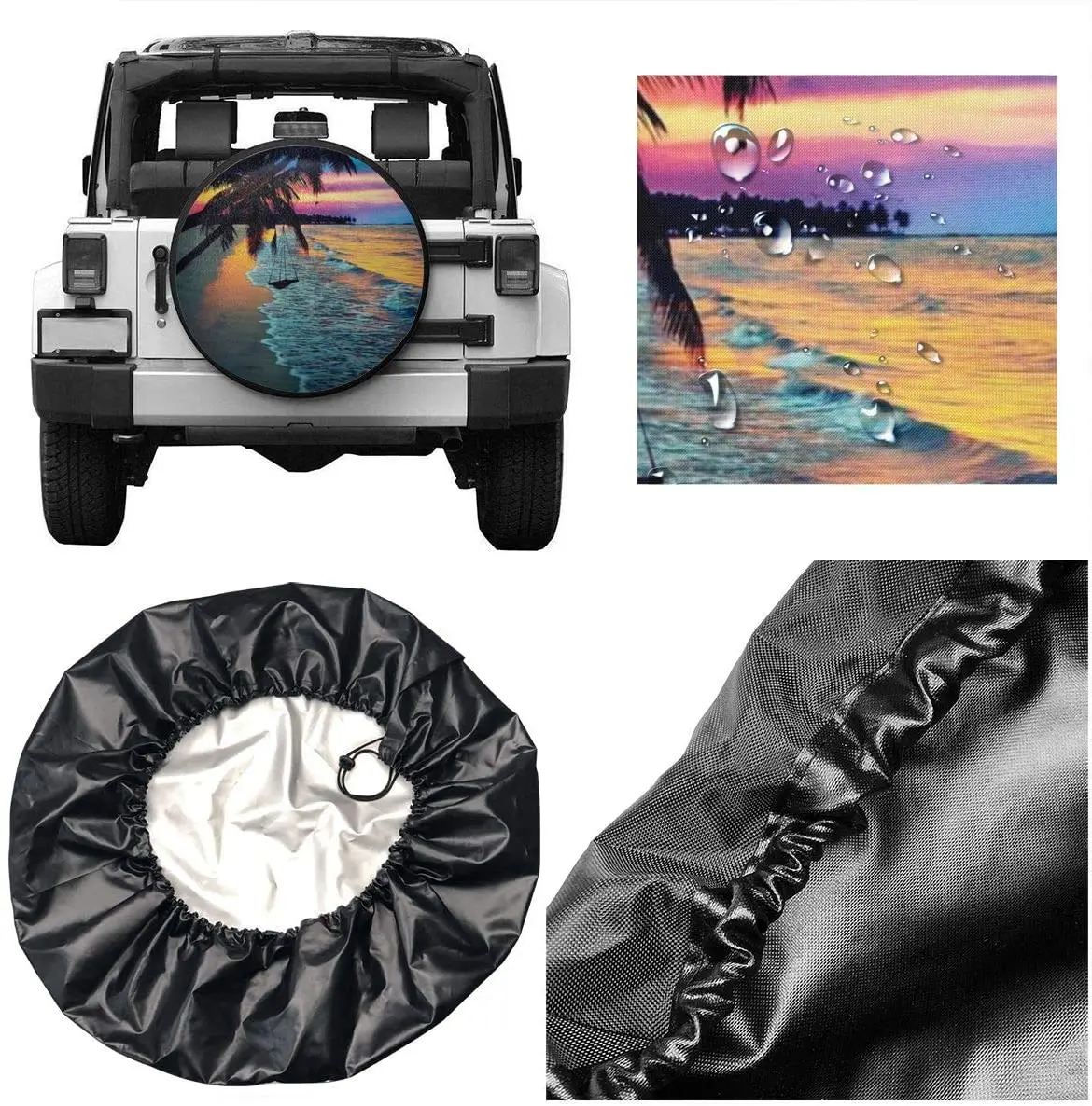 Кокосовый пляжный закат гамак запасная покрышка Водонепроницаемая УФ Солнцезащитная Крышка для колес подходит для трейлера, RV, SUV 17 дюймов