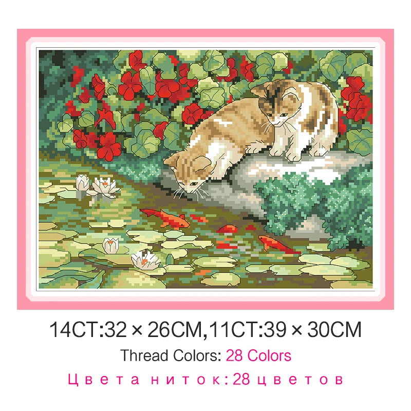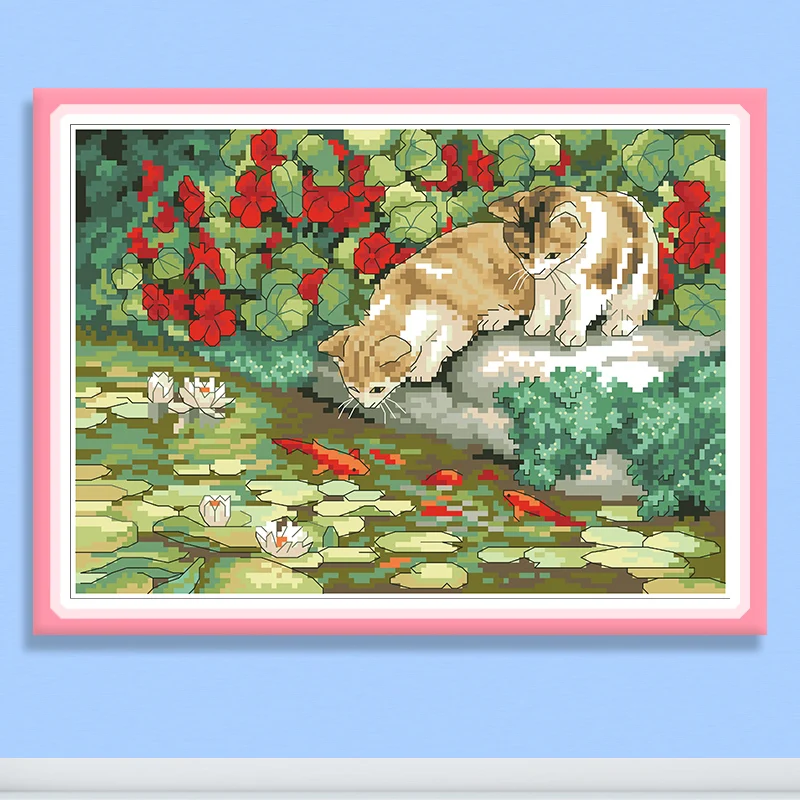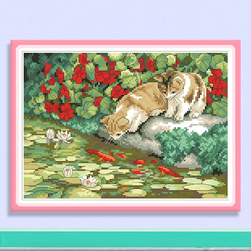 Котенок у воды наборы для вышивки крестиком пустой холст наборы для вышивки 11CT 14CT Сделай Сам ручной работы картины Домашний декор