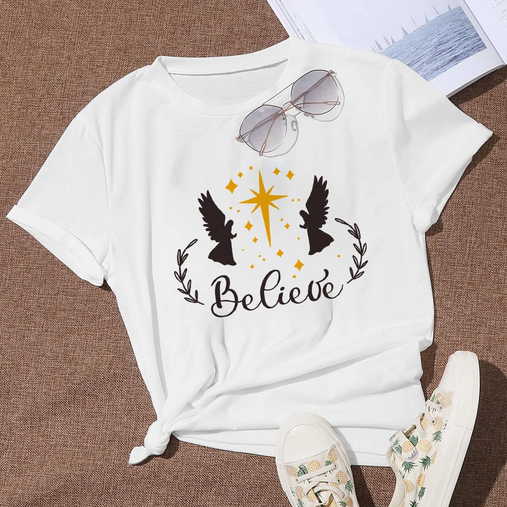Футболка женская с круглым вырезом, модный белый топ для отдыха из ...
