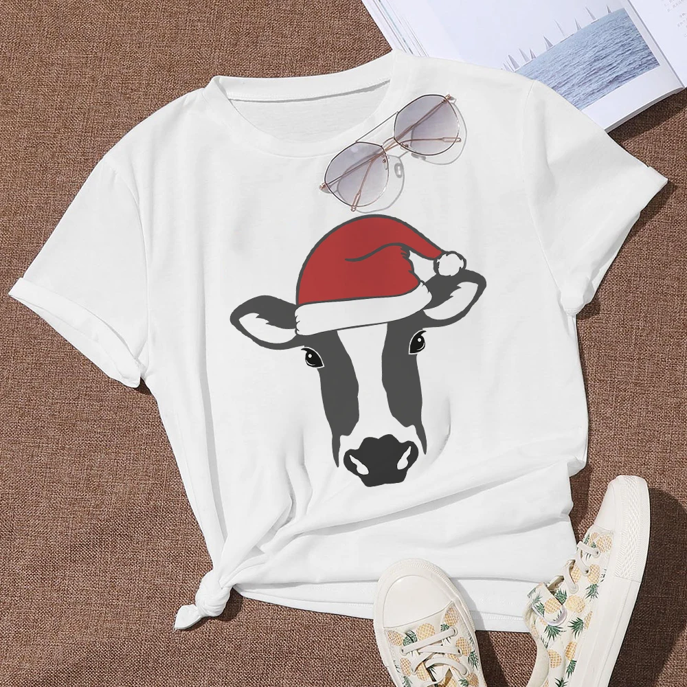 MUMOU Рождественская корова хоп милый забавный графический классный топ новая футболка женская красивая фотография