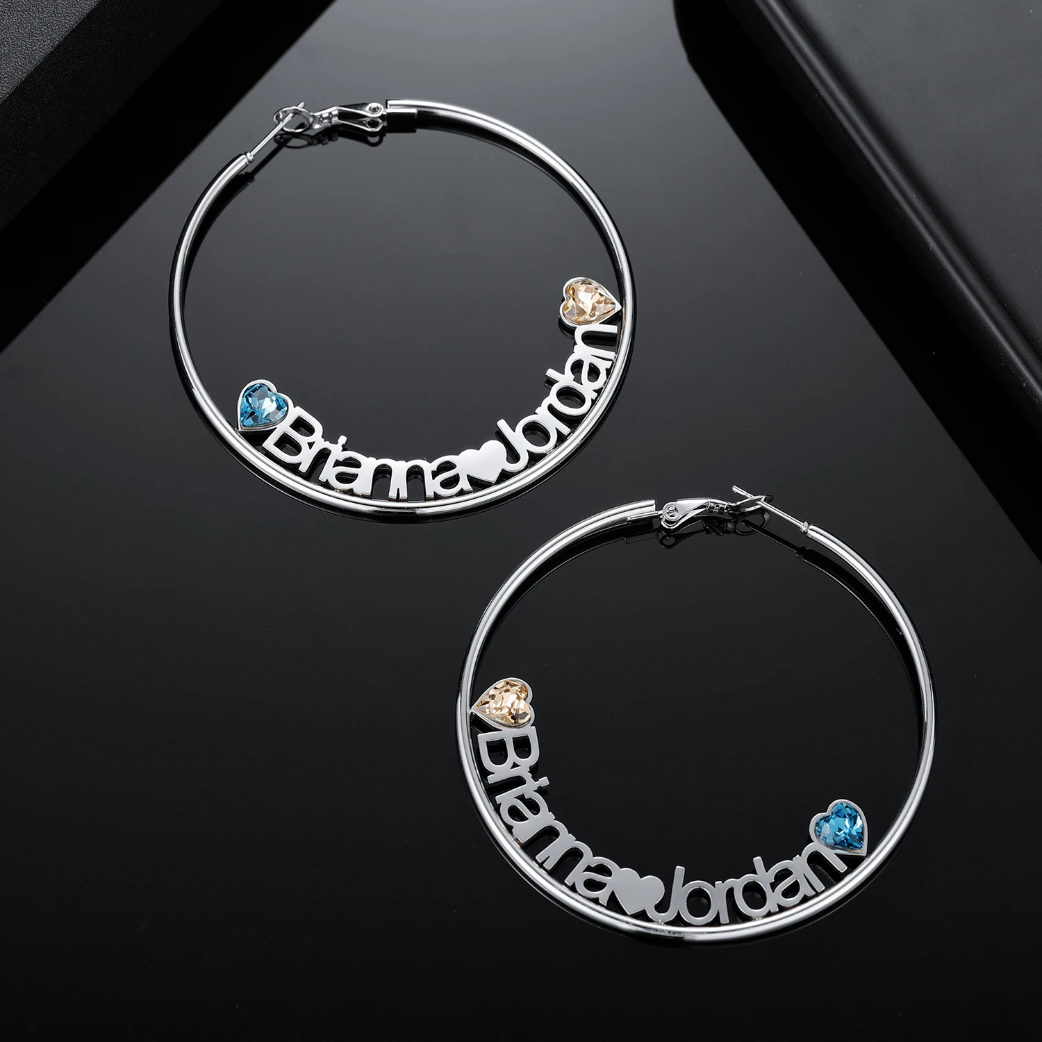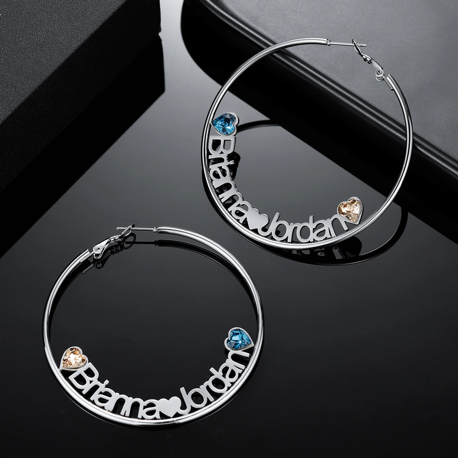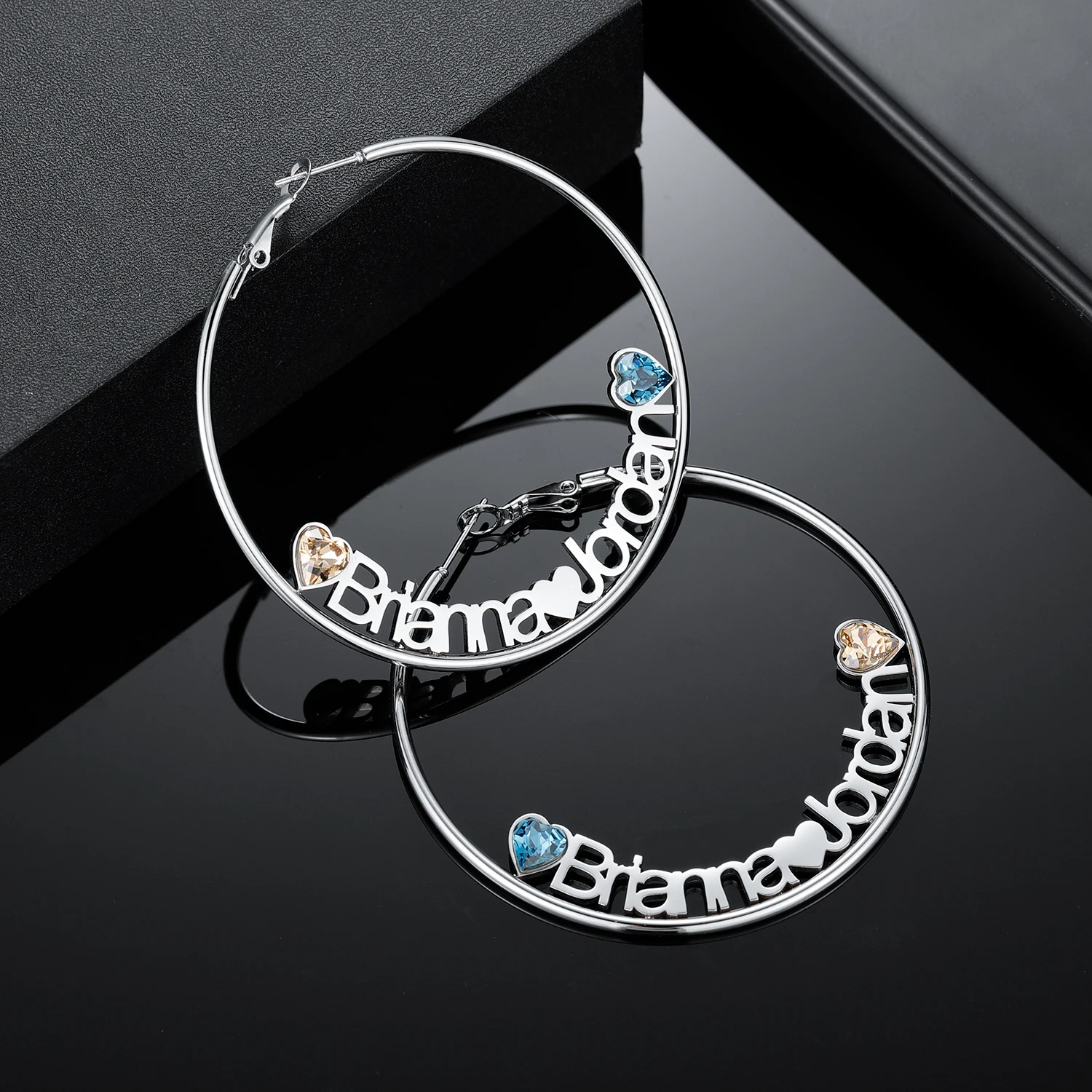 Персонализированные позолоченные серьги-кольца с именем и бриллиант...