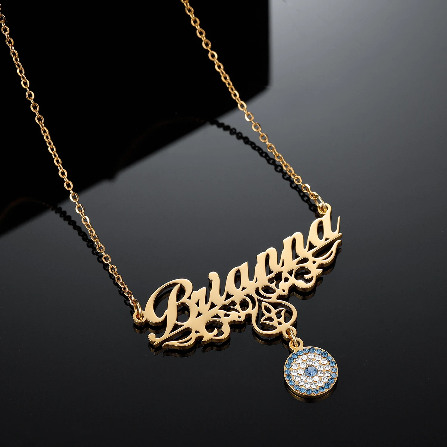 Индивидуальное ожерелье от сглаза с именем, персонализированная позолоченная Подвеска из нержавеющей стали с именем для женщин, ювелирные изделия, рождественский подарок