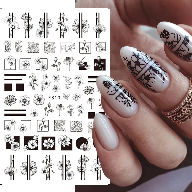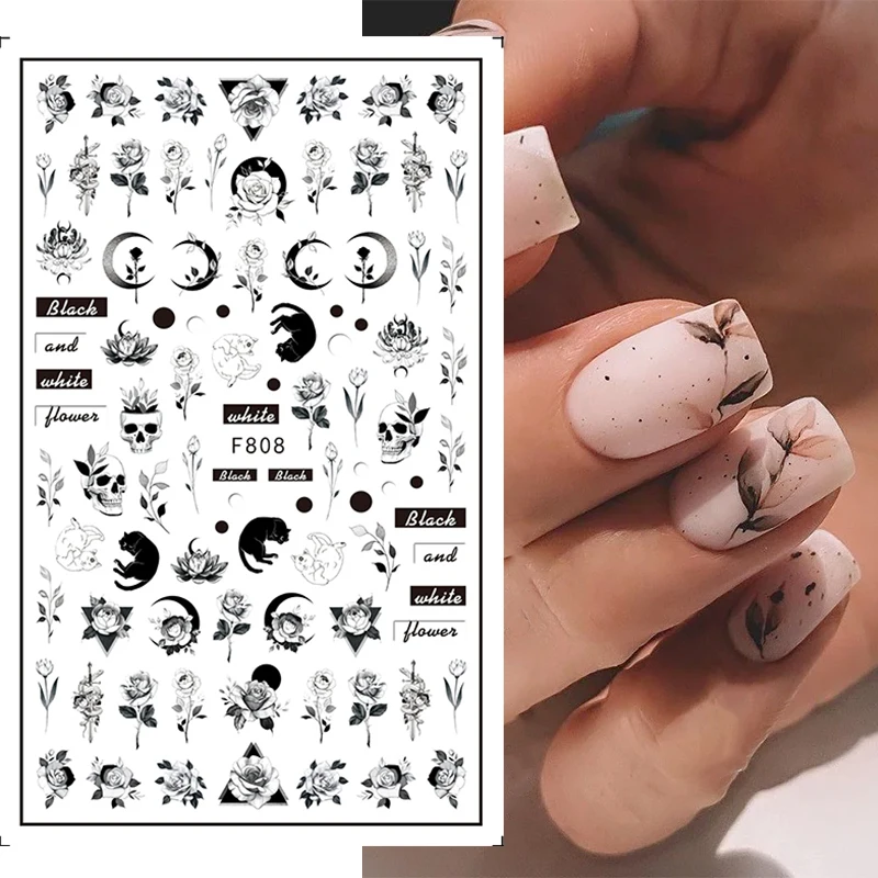 3D наклейки для ногтей, готические весенние черные белые цветы, ман...