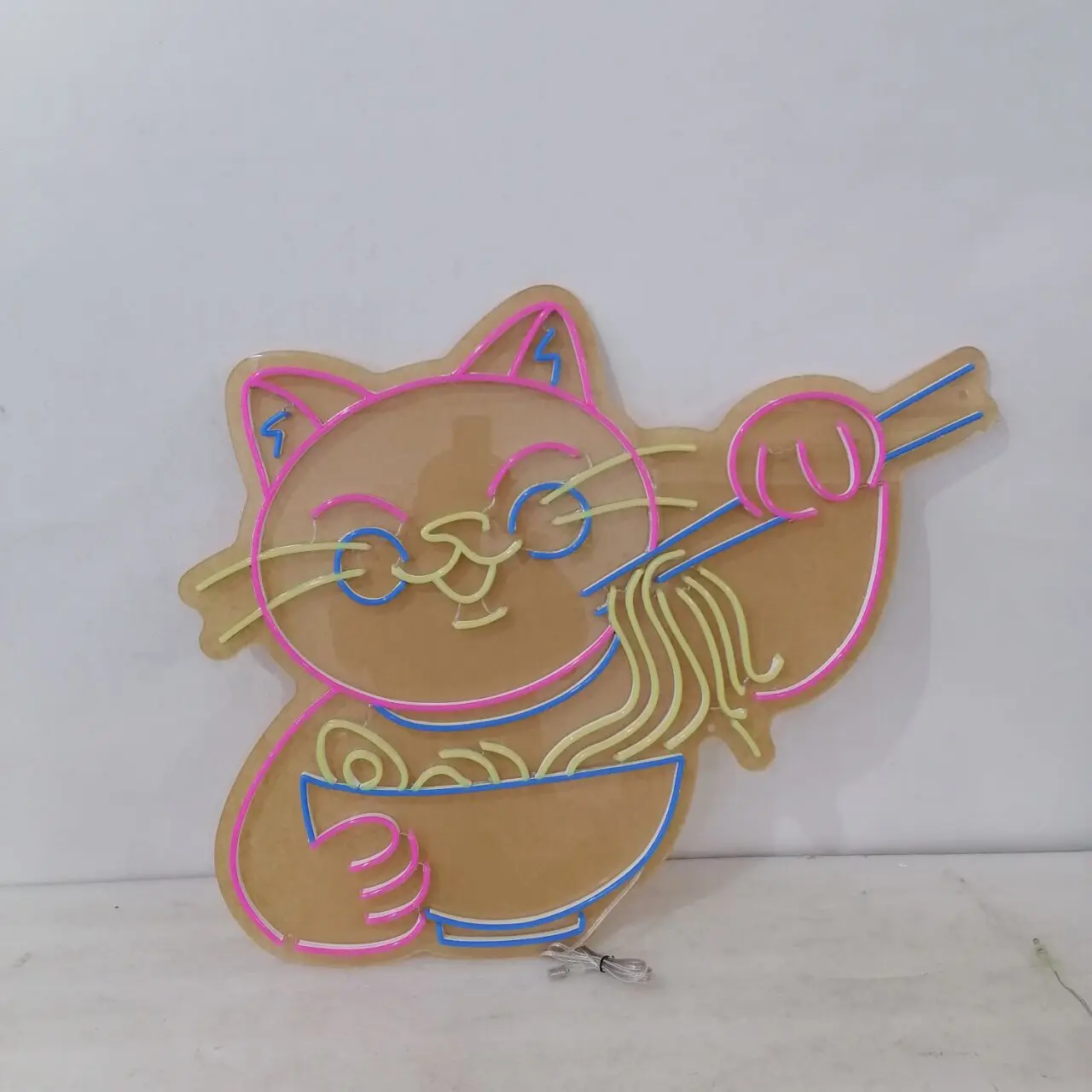 Неоновый светильник, ночная вывеска для счастливого кота, гостиничный дисплей, неоновый светильник, декор комнаты, лампа для рекламы, неоновый лапша, вывеска магазина