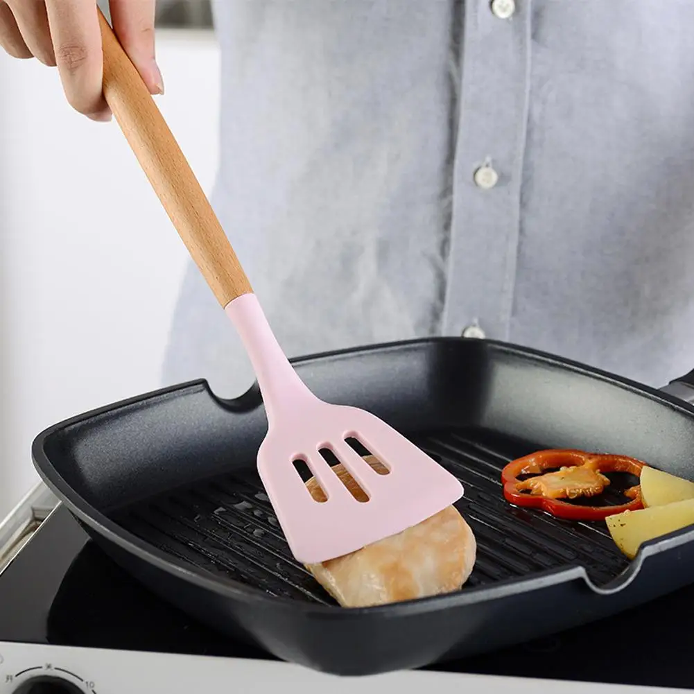 Набор кухонных принадлежностей, силиконовая деревянная ручка, антип...