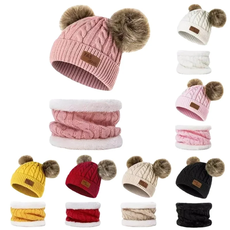 Детская шапка и ожерелье комплект зимняя бархатная вязаная шапка дл...