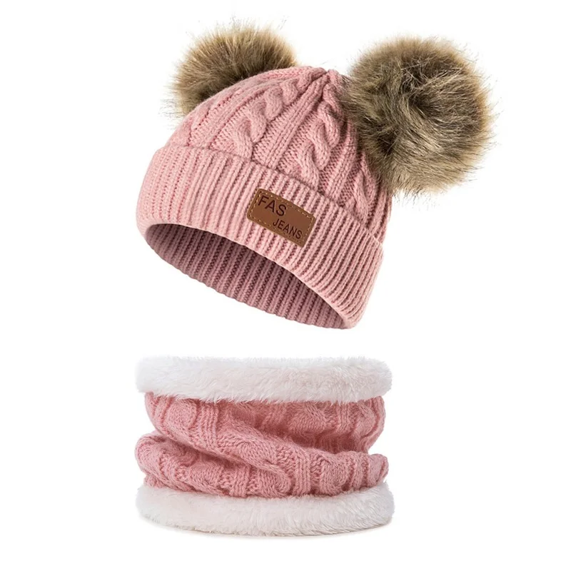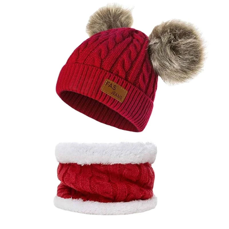 Зимняя детская шапка, шарф, костюм с помпоном, детские шапки, плотн...