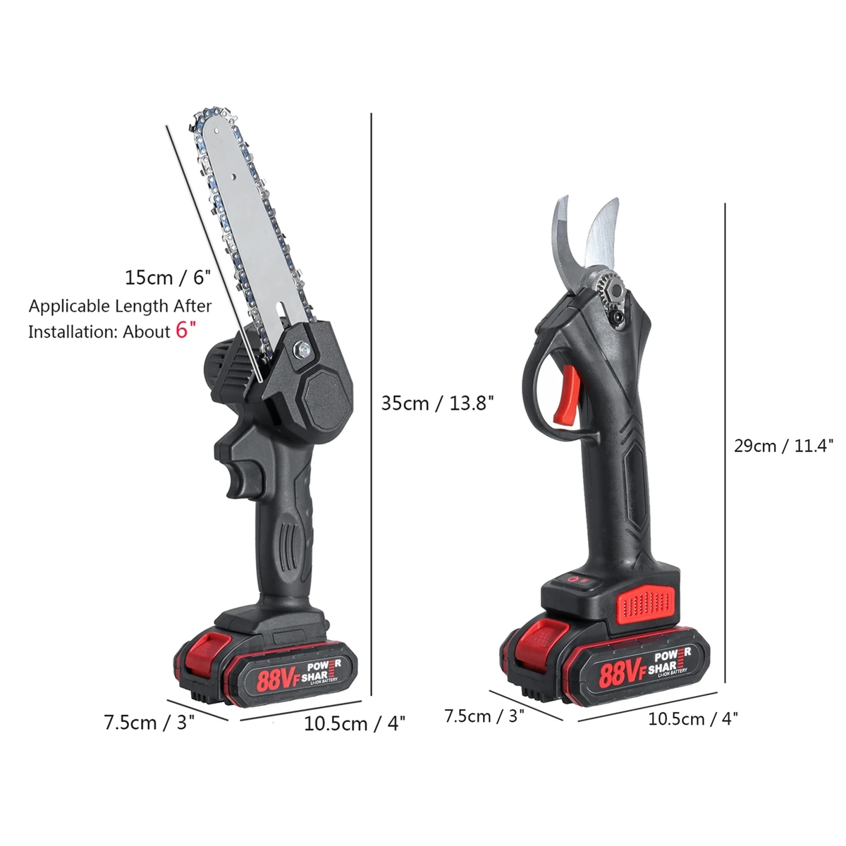 88VF 2 в 1 30 мм беспроводной секатор 6 дюймов Электрическая цепная пила садовый деревообрабатывающий инструмент деревья бонсай резак 2 батареи и коробка