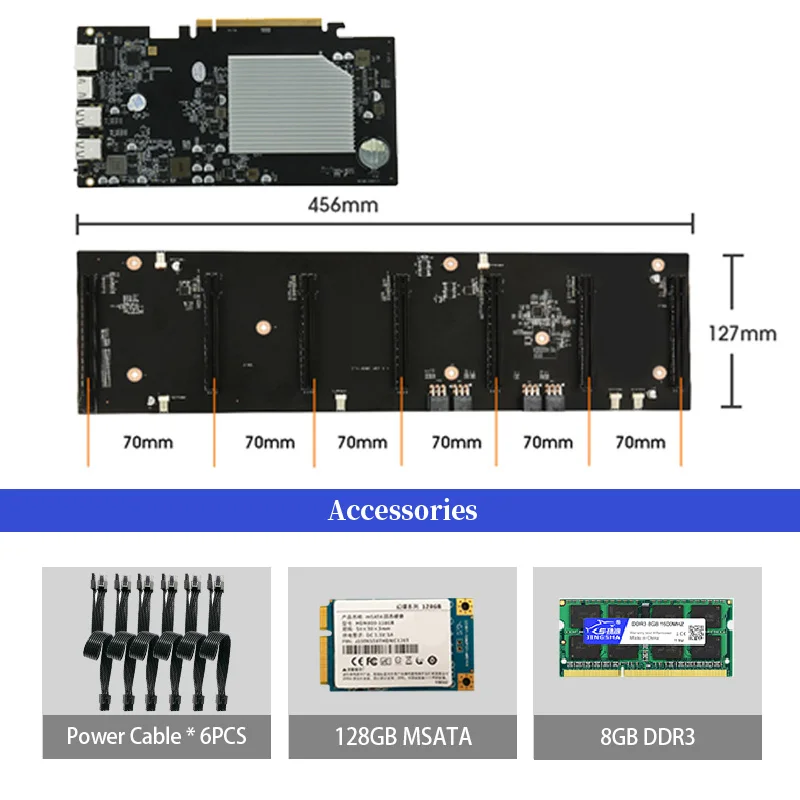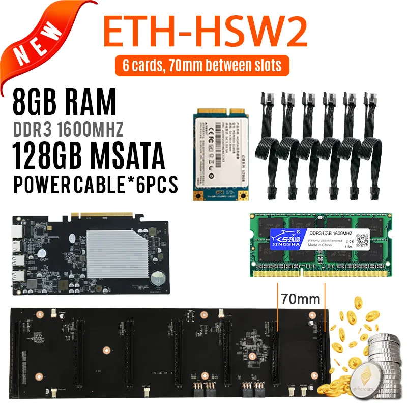 Набор материнской платы для майнинга ETH-HSW2 6 GPU (расстояние 70 мм) с 8 Гб DDR3 1600 МГц RAM,128 ГБ mSATA SSD, кабель питания с поддержкой DDR3 PCIEX16