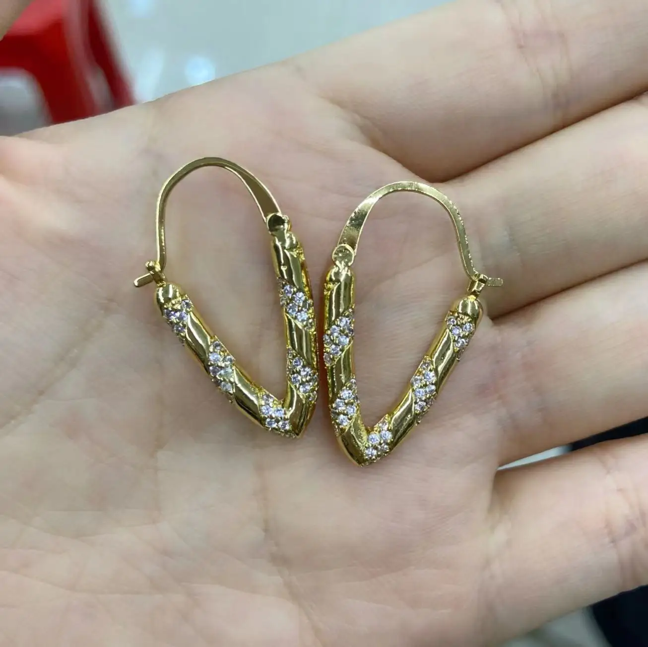 Очаровательные золотистые шлепанцы, серьги-гвоздики, роскошные женс...
